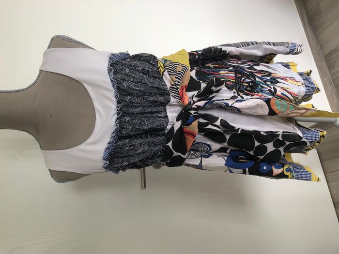 Très jolie haut femme, sans manches Ceinture en tissu à la taille 100% coton Marque Leslie Taille 42 Aisselle: environ 45 cm Légère coloration au niveau des aisselles (cf photo)
