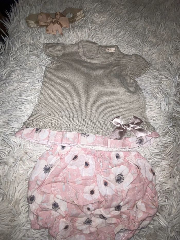 Ensemble Lola palacios bloomer et pull fin sans manches avec bandeau 12 mois TBE porté une seule fois