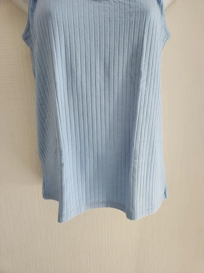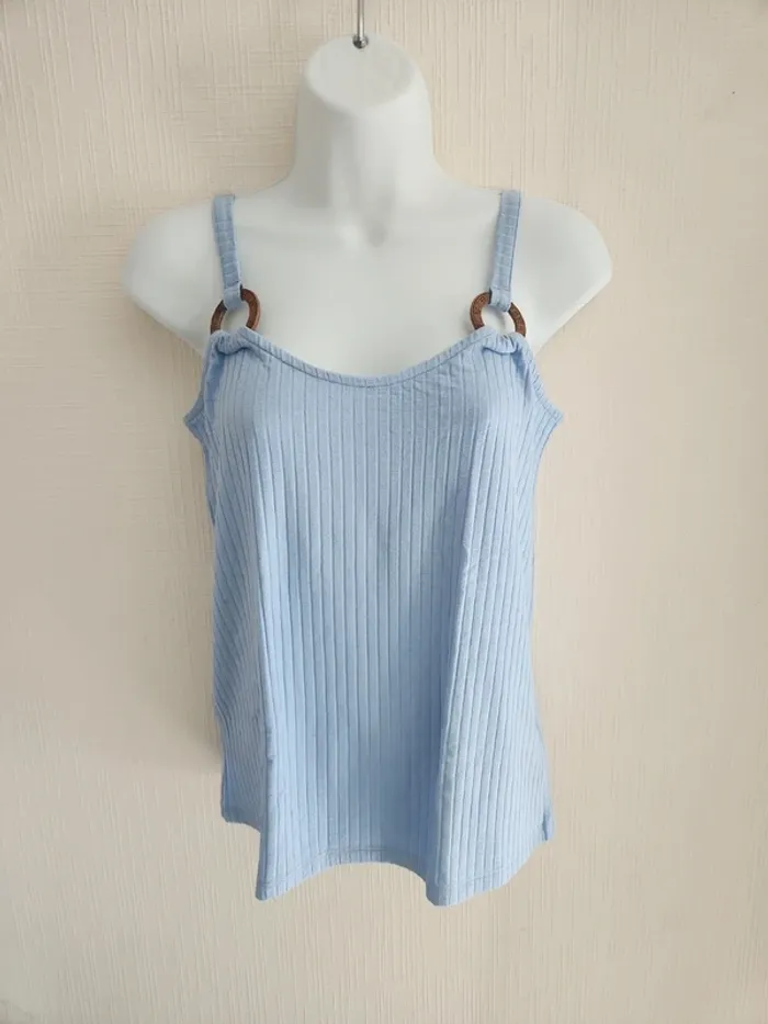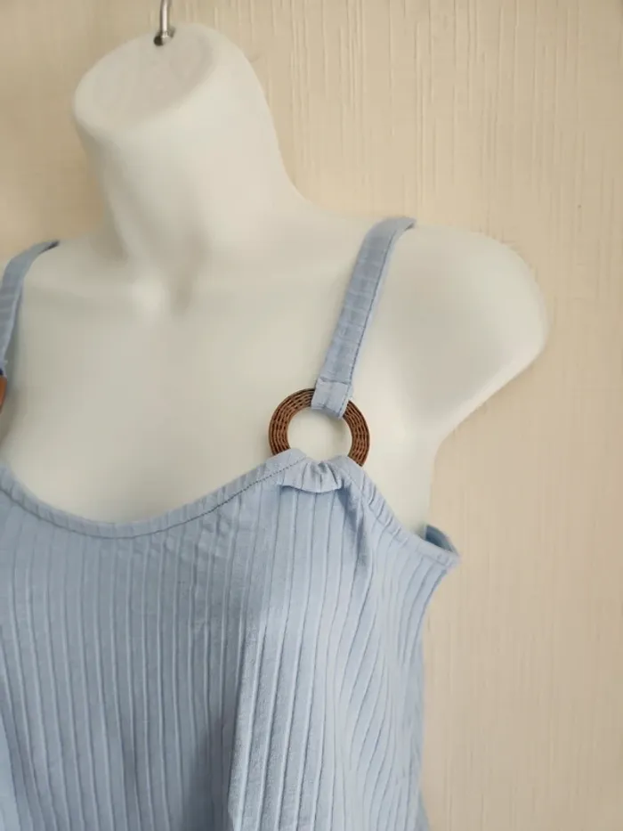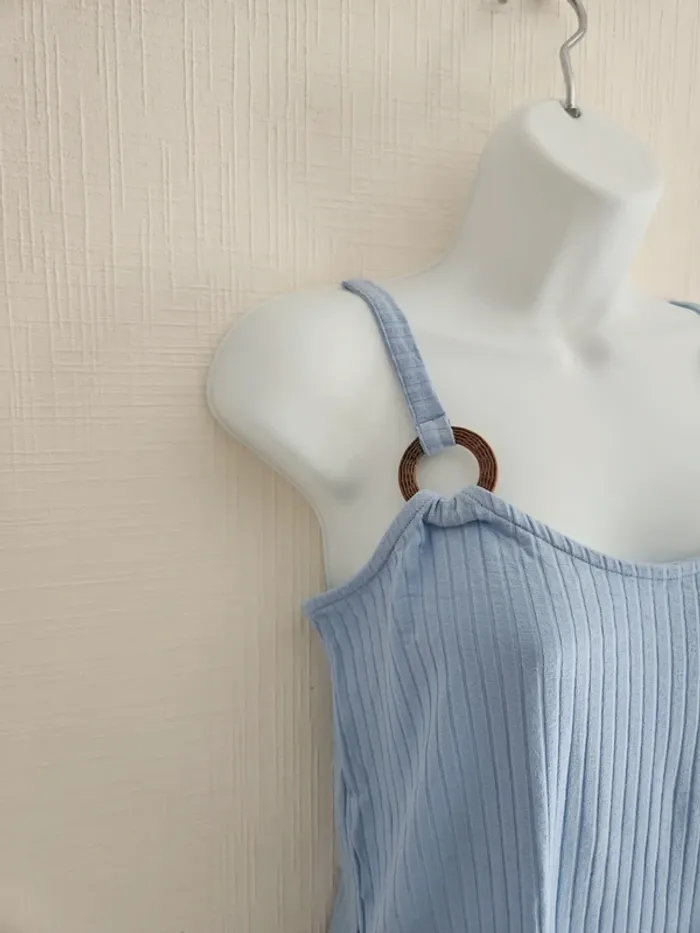 Débardeur de la marque NA-KD en taille 34 de couleur bleu ciel neuf avec étiquette, détail cercle effet bois à la base avant des bretelles Autres articles de cette taille ici: #pseudodofemme34 Envoi rapide et soigné via diverses plateformes #pseudodofemme34 #nakd #nakd34 #nakdtop34 #débardeur #new