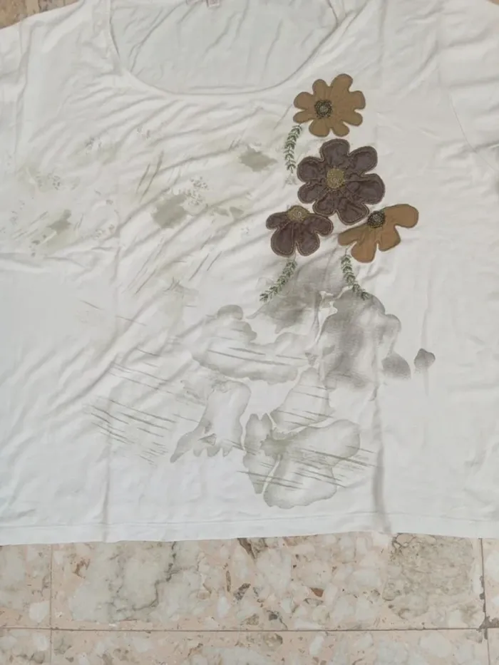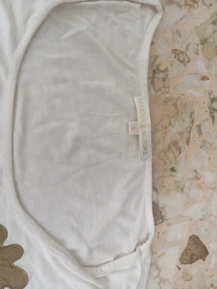 En très bon état Marque un jour ailleurs Taille 5 Couleurs crème vert Largeur épaule 50 cm Largeur sous bras 60 cm Longueur 58 cm