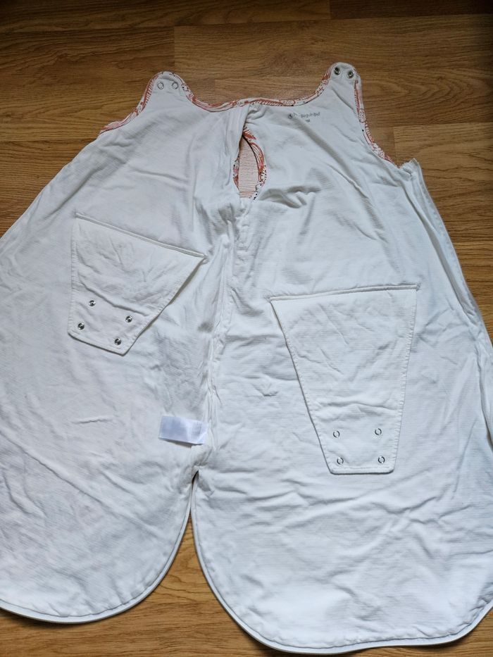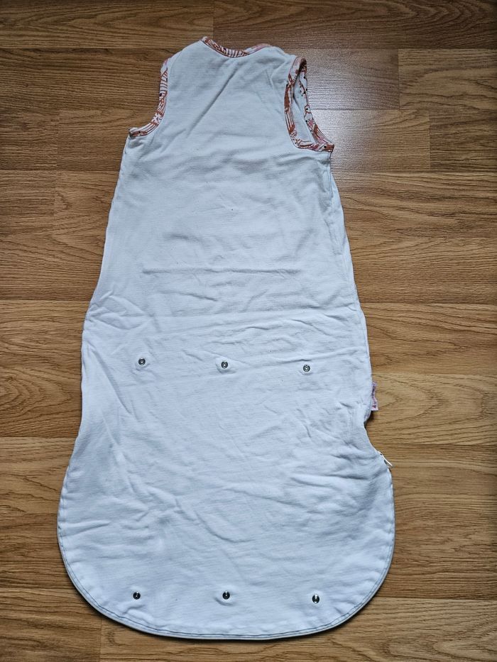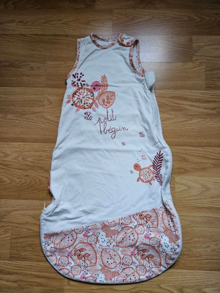 Turbulette été, marque Petit Béguin, taille 6-18 mois. Boutons pression à l'arrière pour replier la turbulette si elle est trop longue, pression dans la turbulette pour maintenir bébé. 2 boutons pression à l'encolure et fermeture de bas en haut. Bon état.