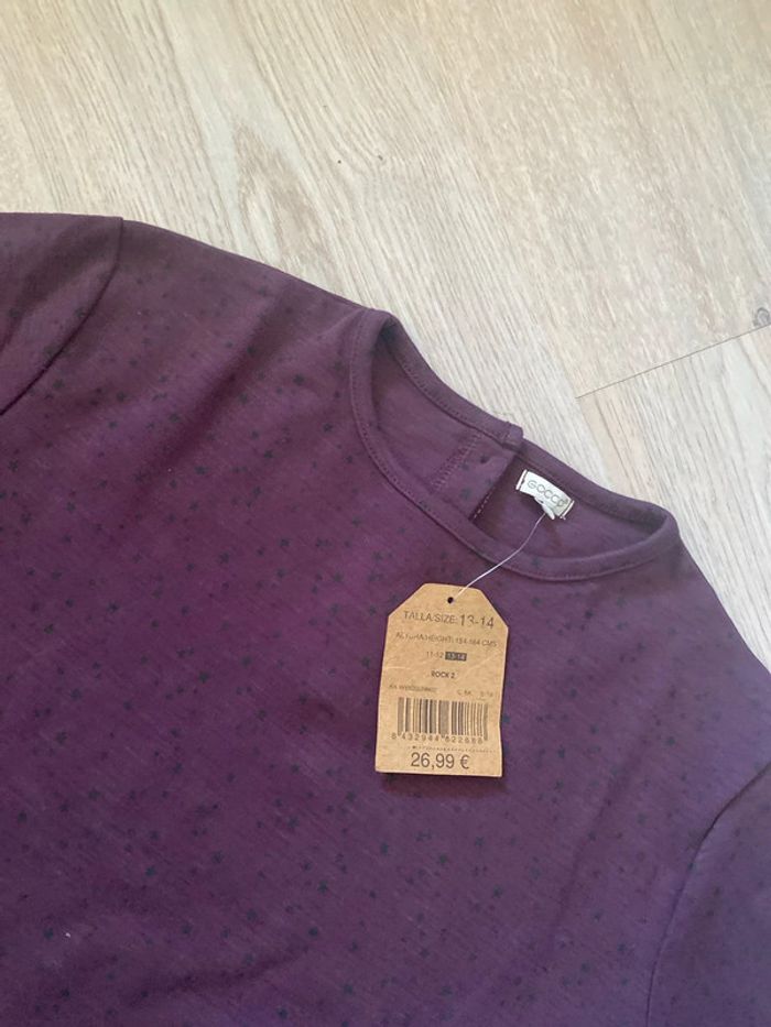 Tee shirt T-shirt Gocco taille 13 14 ans Neuf Tissu épais s’assimile à un Sweat léger Couleur aubergine Coton