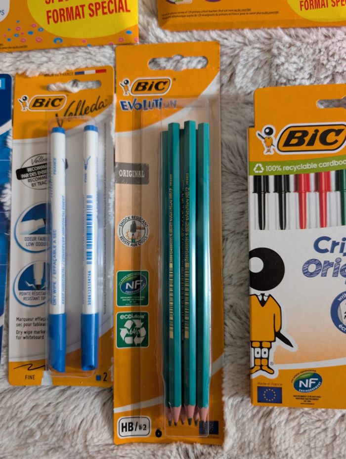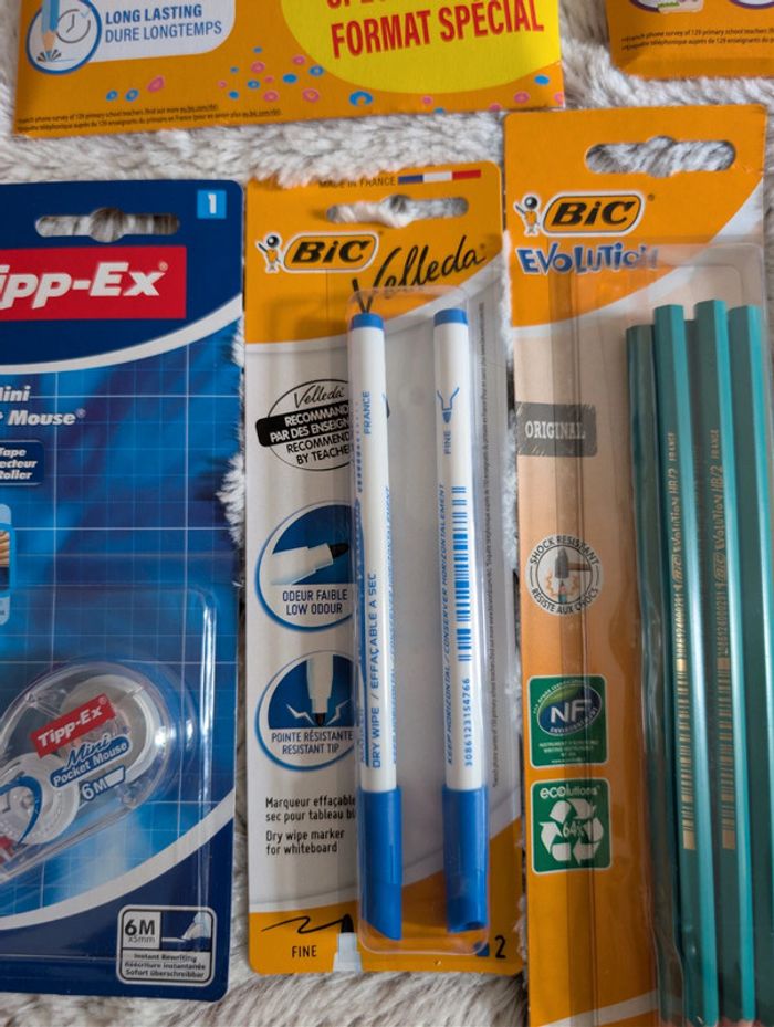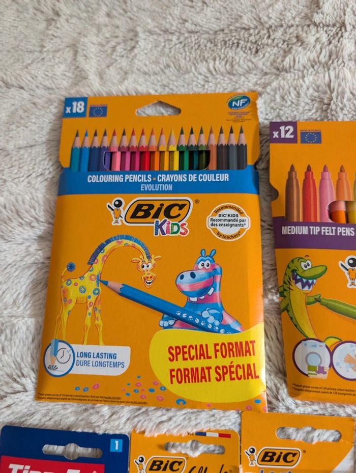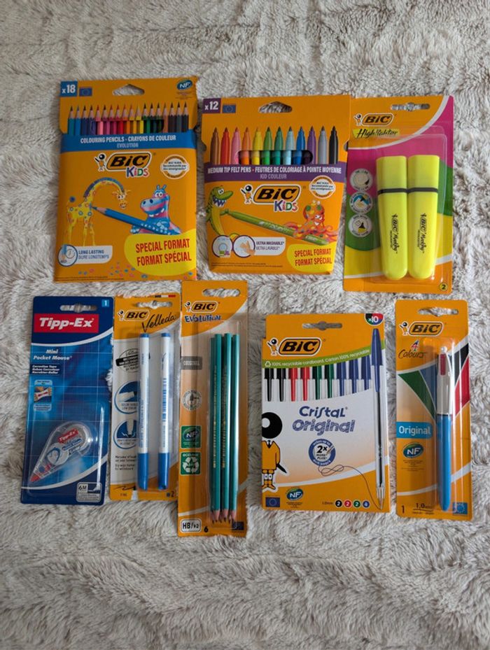 Gros lot de fournitures scolaires Neuf 18 crayons de couleur 12 feutres 2 highlighter 1 souris 2 marqueurs effaçable 6 crayons gris HB 1 stylos bic cristal 1 stylo 4 couleurs #stylo #bic #feutre #neuf #tippex #crayon #crayonsdecouleurs #stylo4couleur #sttlobic #souris #fluo #highlighter