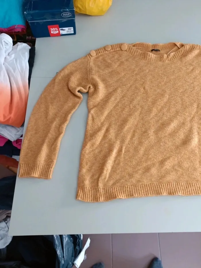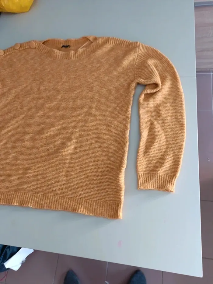 Pull original bouton Kiabi XL moutarde - photo numéro 6