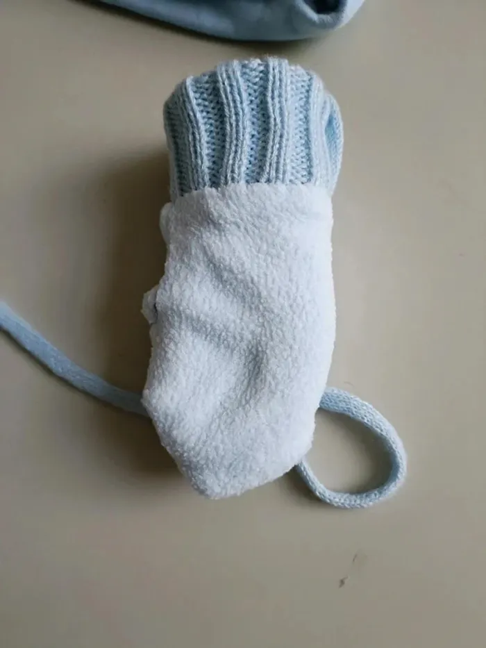 Ensemble bonnet chaud et moufle hiver bleu ciel HB 6-12 mois - photo numéro 4