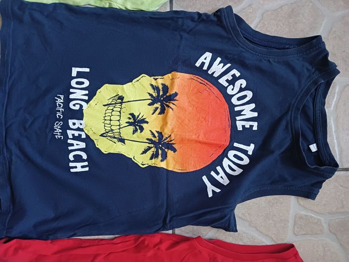 Taille 134/140 .10 ans . Le rouge Kiabi. Le bleu c& a Le vert Sans marque.