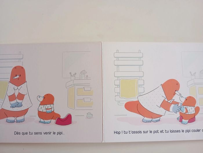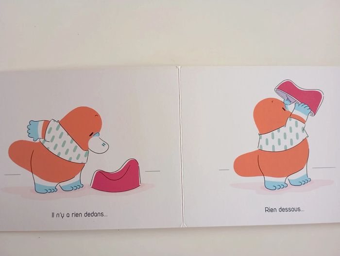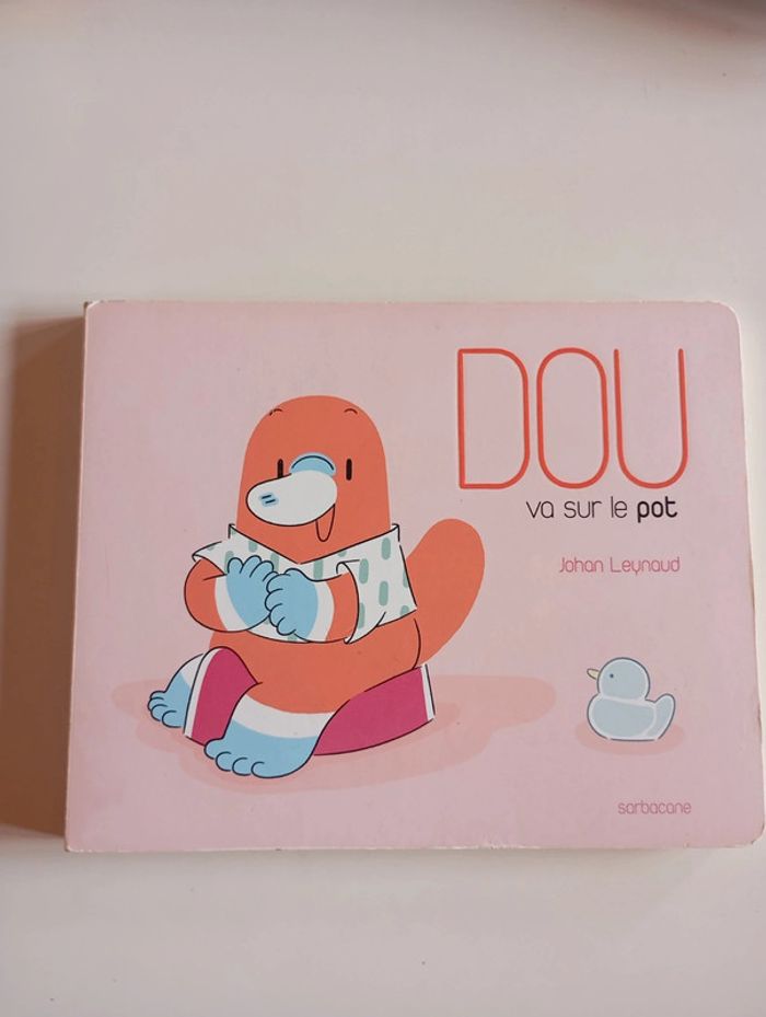 DOU, le bébé ornithorynque, découvre un objet inconnu dans la salle de bains. Il l'observe, essaie de voir si c'est un chapeau... Non... Un tambour ? Non plus... Toujours curieux, il appelle Maman à la rescousse. Fort de ses explications, il s'assoit dessus et, presque sans s'en apercevoir, il fait pipi dedans alors que Maman est encore en train de dire que ça lui prendra du temps, de devenir grand... ! Oh, la belle surprise ! Bravo, DOU !! Éditeur ‏ : ‎ SARBACANE 28 pages Âge de lecture ‏ : ‎ 1 - 3 ans Dimensions ‏ : ‎ 17.7 x 1.3 x 22 cm Livre en très bon état (Petite marque au coin de la tranche) #hygiène #propreté #couche #pot