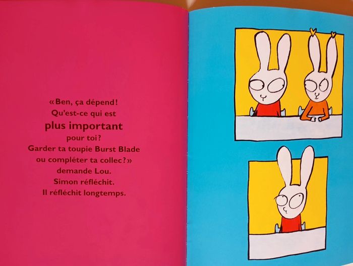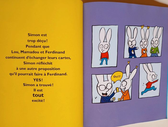 Il manque une seule carte à Simon pour compléter sa collection Kikojun. C'est la carte Ultra Dragaba, celle avec la petite étoile en bas à droite. Qui l'a ? demande Simon à la récré. Ferdinand répond : moi ! Hélas, il n'est pas d'accord pour l'échanger à Simon... sauf contre sa toupie Burst Blade très chère ! Il va falloir bien réfléchir. Qu'est-ce qui compte le plus pour Simon ? Editeur : Ecole des Loisirs 40 pages Dimensions : 22 x 27 cm Âge : 3 - 6 ans Livre en très bon état Je vends d'autres livres de l'école des loisirs #phil_peg_écoledesloisirs ou de Stephanie Blake #phil_peg_stephanieblake, #phil_peg_simon, #phil_peg_école #écoledesloisirs #simon
