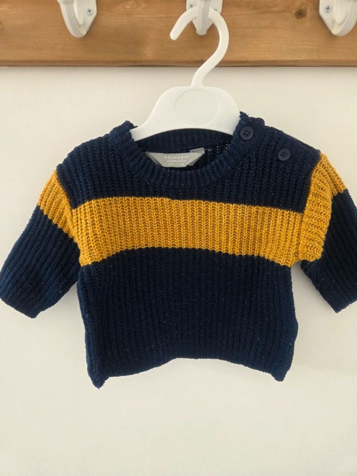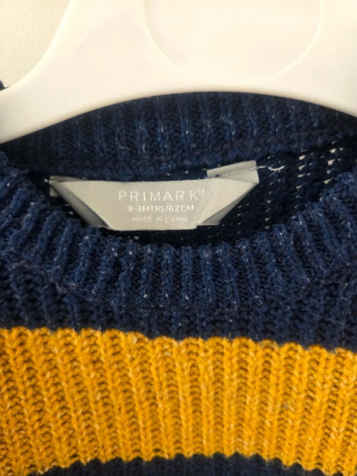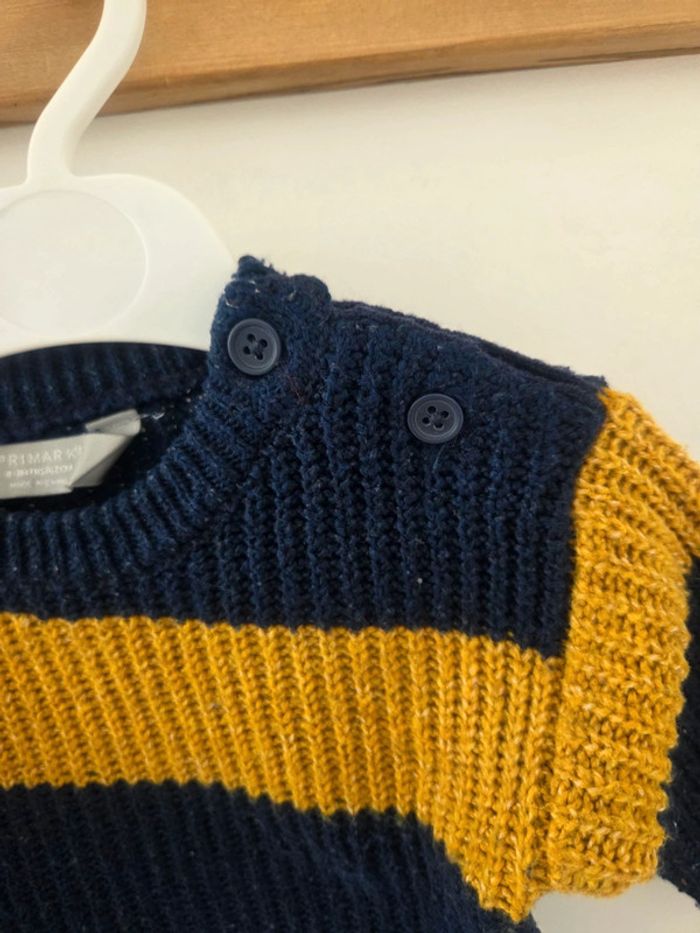 Pull primark 3m bleu et moutardes. Col rond. En bon état très léger peluches par endroit mais rien de méchant. #cyndie174bébé #cyndie174bébé3m #primarkbebe3mois #primarkbebegarcon