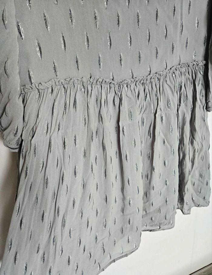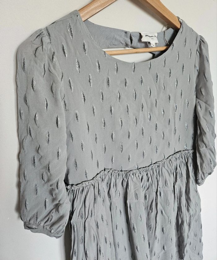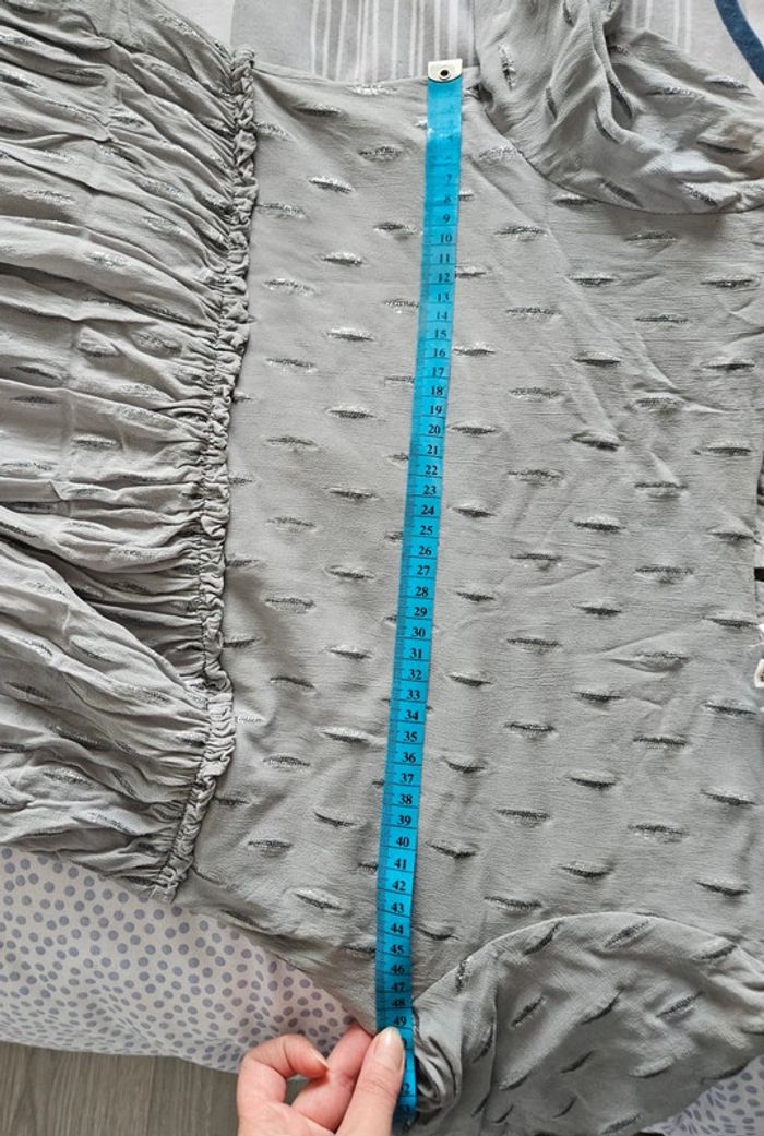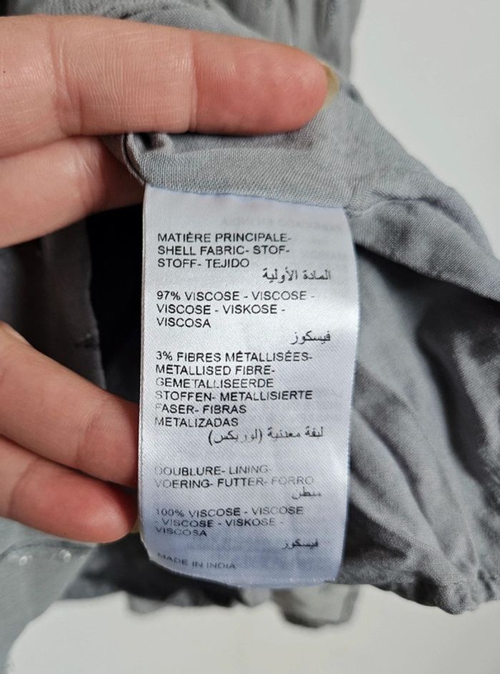 Robe grise, avec de feuilles argenté, manche courte, cintré à la taille et fluide sur le bas, doublure ➡️ Largeur à plat sous les bras 49 cm ➡️ Longueur 77 cm ➡️97% viscose 3% fibres métallisée ⭐ Excellent état ✈Envoi rapide des colis 💗 Abonnez vous à mon profil, nombreux articles ajoutés régulièrement ! #laetitresors_robe40 #robe #grise #feuille #maison #123 #manche #courte #brillant #doublée #doublure #elastique #fluide #cintré #chic