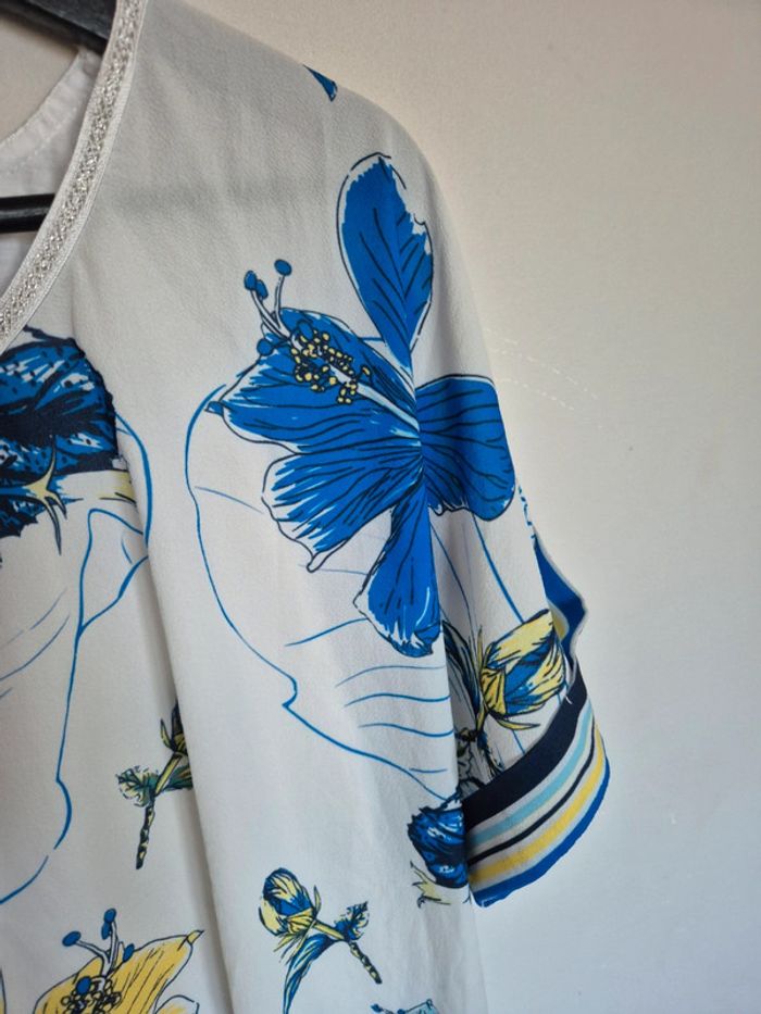 📌 Lot 20% de remise pour l'achat de 5 articles, suite ... Blouse blanche avec des fleurs bleu, manche courte, taille grand pour une taille L, peut aller pour un 42 ➡️Largeur à plat sous les bras  54 cm ➡️Longueur 74 cm ➡️ 98 % polyester 2 % élasthanne ⭐ Excellent état ✈Envoi rapide des colis 💗 Abonnez vous à mon profil, nombreux articles ajoutés régulièrement ! 🌸 Tapez Laetitresors pour voir mes annonces #laetitresors_blouse40 #blouse #blanc #bleu #fleurs #fleurie #jacqueline #riu #manche #courte #fleurie #laetitresors