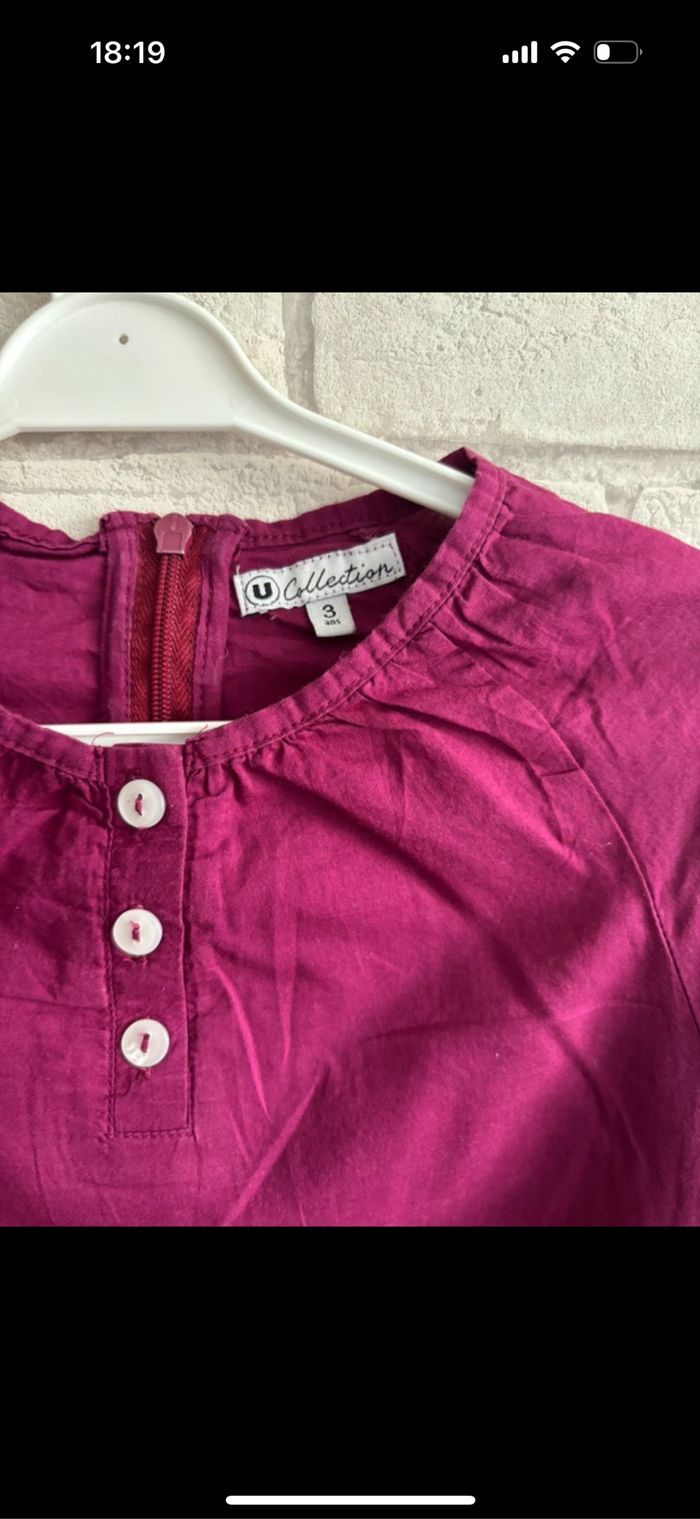 Blouse U Collection taille 3 ans (96 cm) en très bon état. Couleur violet. 100% coton.