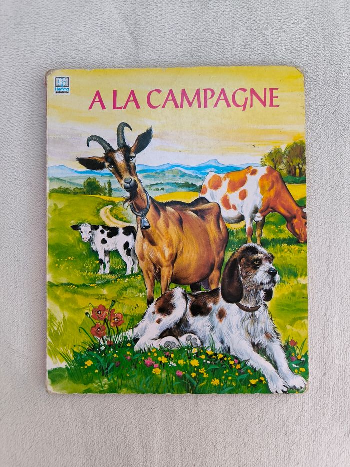 Livre À la campagne Éditions Hemma • Pages cartonnées -> Chien, brebis, canard, poule, âne, cheval, chèvre, lièvre, chat, oie • Coins abîmés Ancien livre En état satisfaisant #evelyne_livres