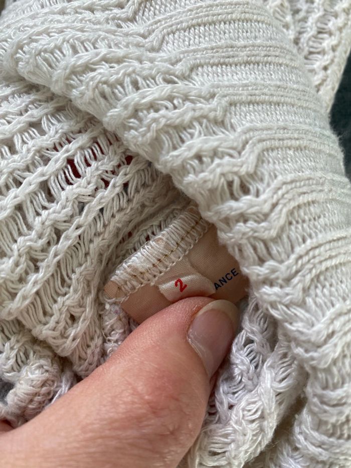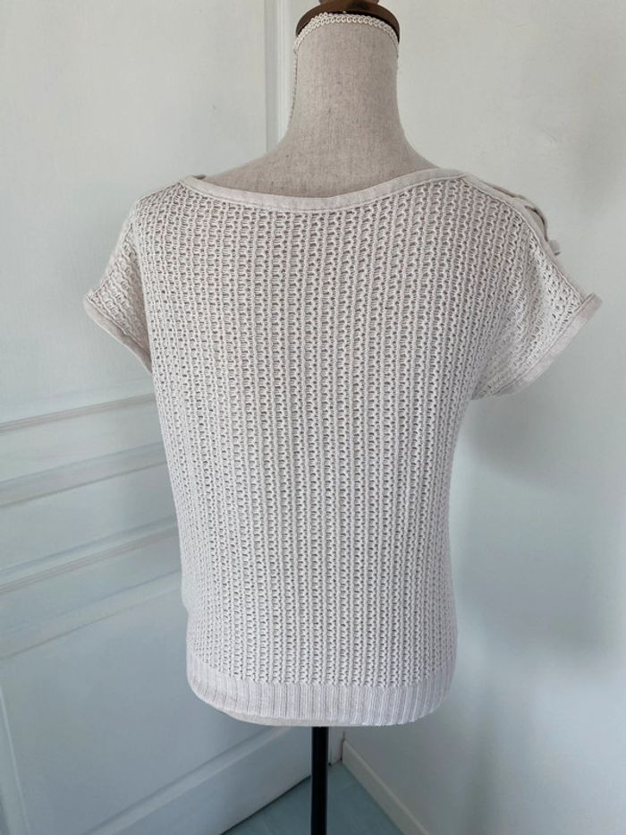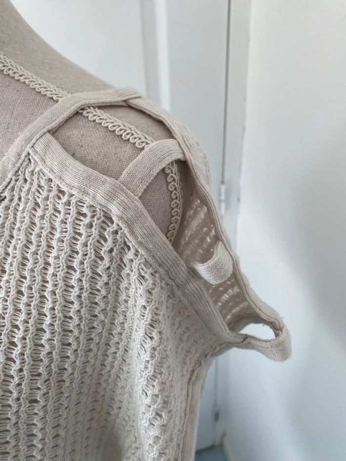 Pull blanc cassé Ajouré Découpe au niveau des épaules Taille 2 Épaules 47cm Aisselles 47cm Longueur 56cm Acrylique et lin #caco3007femme
