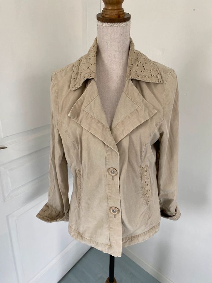 Veste légère beige avec broderie - photo numéro 1