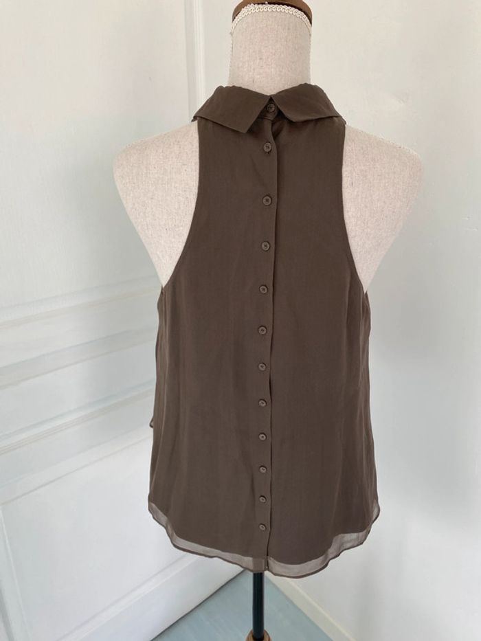 Top épaules dénudées marron Marque kookai Taille 38 En soie Discrets fils de tirés voir photo #caco3007femme