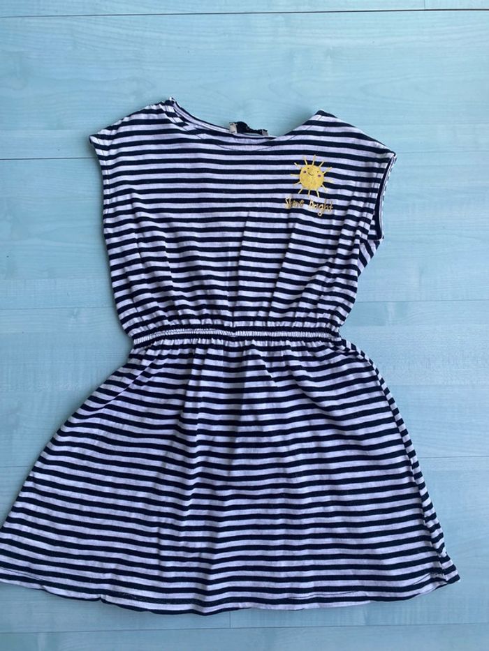 Robe rayée noir et blanc Motif soleil ( craquelé voir photo) Marque C&A Taille 7 ans #caco3007fille7ans
