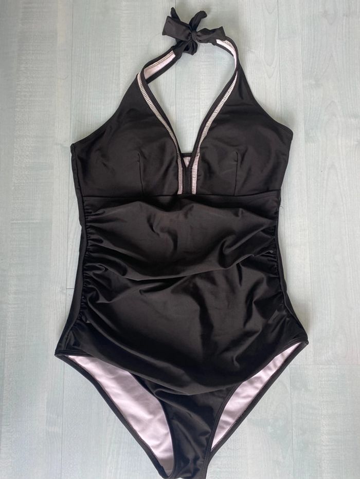 Maillot de bain 1 pièce noir avec couture blanche Présence de coussinets amovibles Noyé dans le cou Acheté sur Amazon Taille XL #caco3007femme