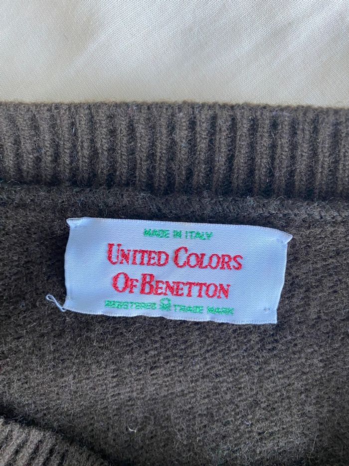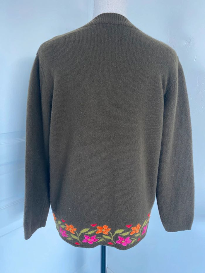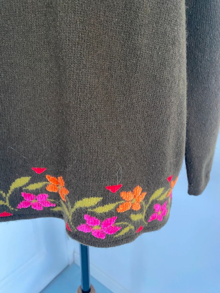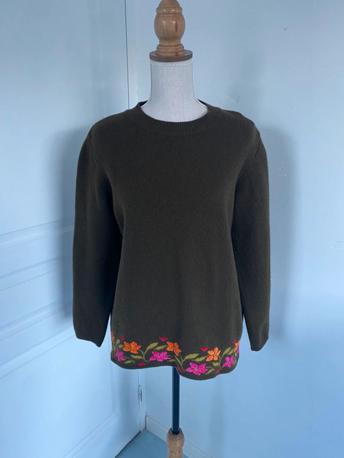 Pull kaki avec détail fleuri en bas Marque united colors of benetton Vintage Taille 48 ( taille italienne) Épaules 40cm Aisselles 51cm Longueur 64cm #caco3007femme
