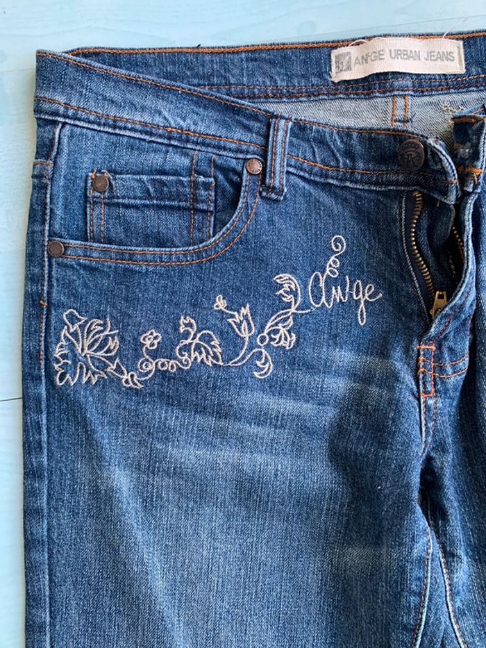 Jean taille basse Bas un peu évasé Détail broderies Marque an’ge Taille 40 #caco3007femme