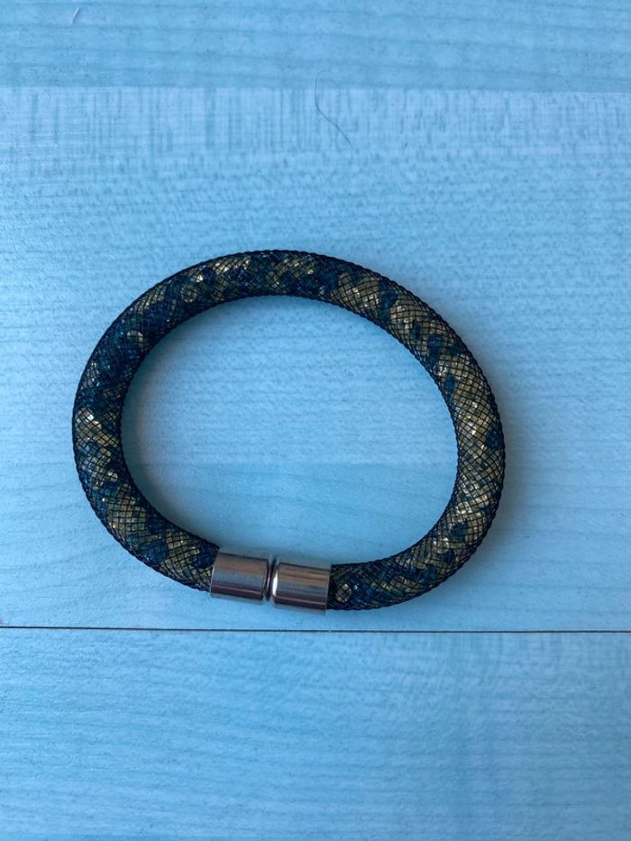 Bracelet aimanté Maillage noir avec cristaux de Swarovski jaunes et bleus verts #caco3007bijou