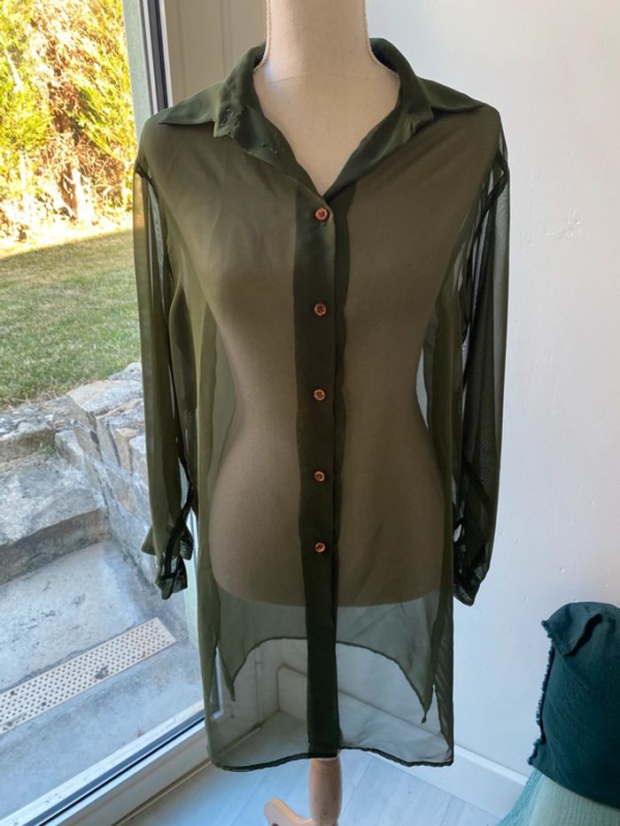 Chemise longue transparente vert kaki Absence d’étiquettes #caco3007femme