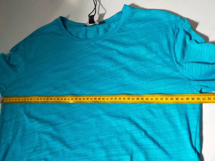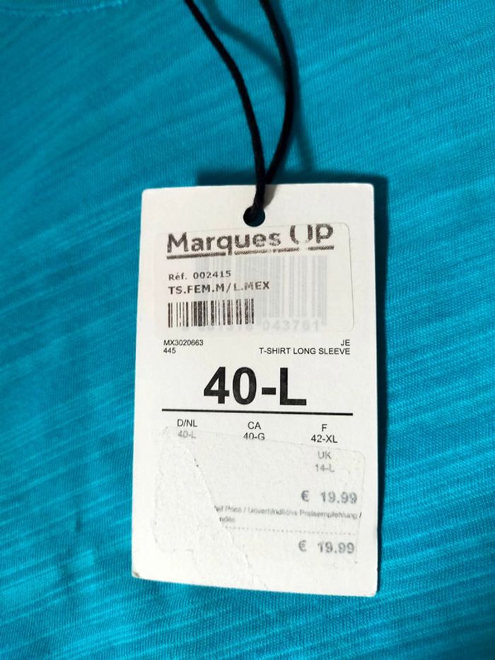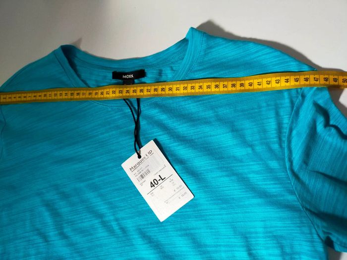 Haut manches longues Mexx, neuf avec étiquette. Couleur : turquoise vif, matière légère et douce, agréable à porter. Coupe droite et légèrement courte, idéale avec un jean ou une jupe taille haute. 📌 Détails : Marque : Mexx Taille : 40 – L (EU) Composition : 100 % coton (voir étiquette) Entretien : lavage à 30°C, pas de sèche-linge, repassage doux (cf. étiquette) État : Neuf avec étiquette 📏 Mesures (voir photos) #hautfemme #mexx #mancheslongues #turquoise #tshirtfemme #vetementfemme #modefemme