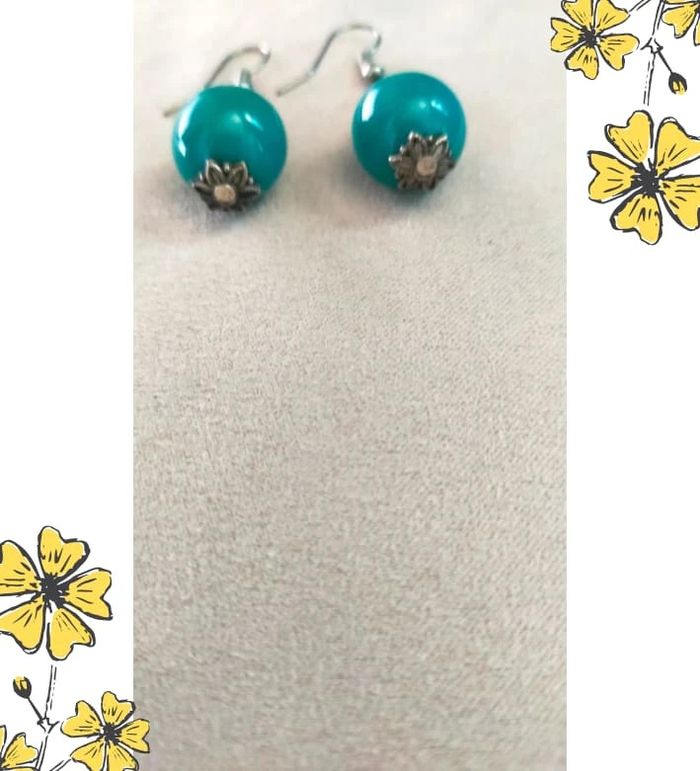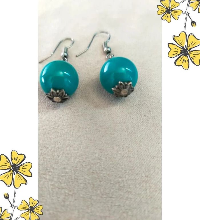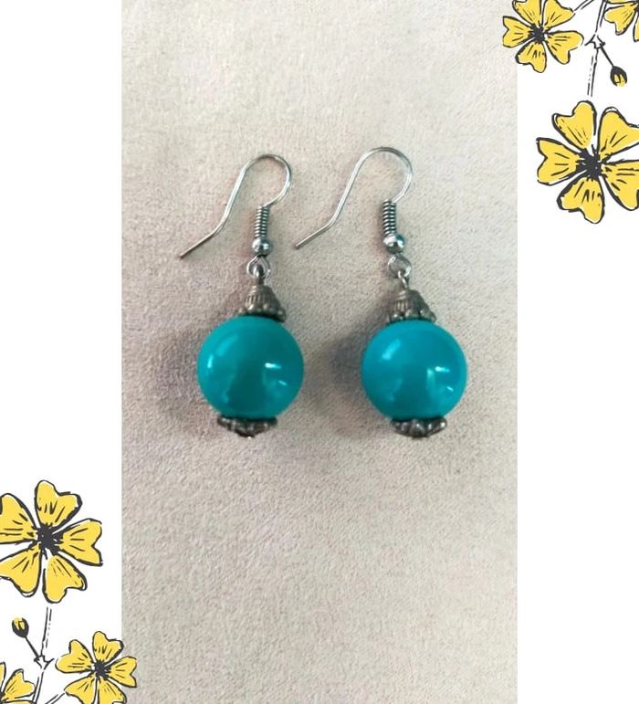 Boucles d’oreilles vintage – Perles turquoise & détails argentés - Collection Brume Bleue - photo numéro 1