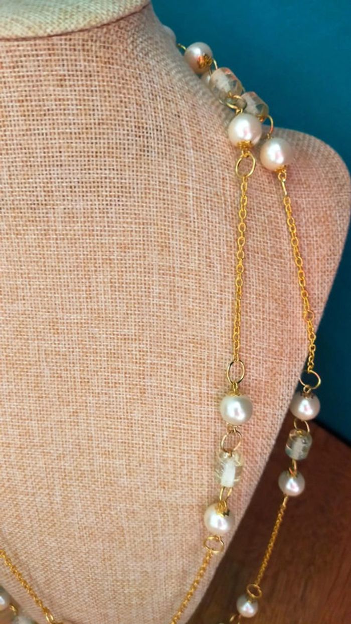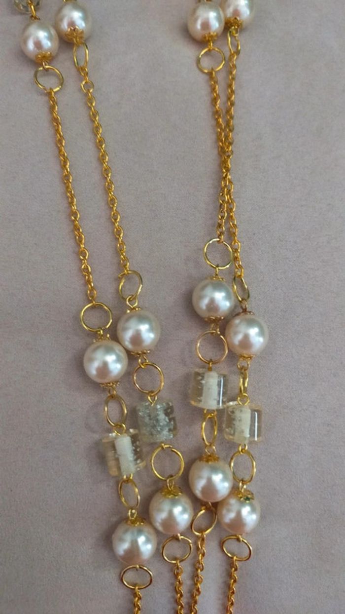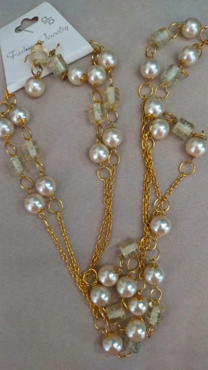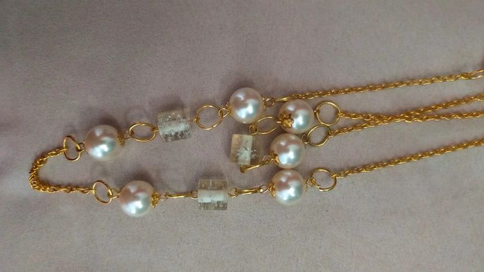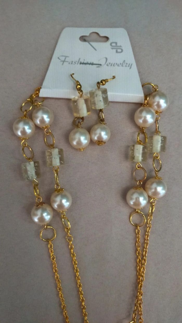 Parure collier + boucles d’oreilles perles dorées - photo numéro 1