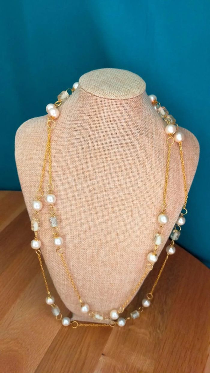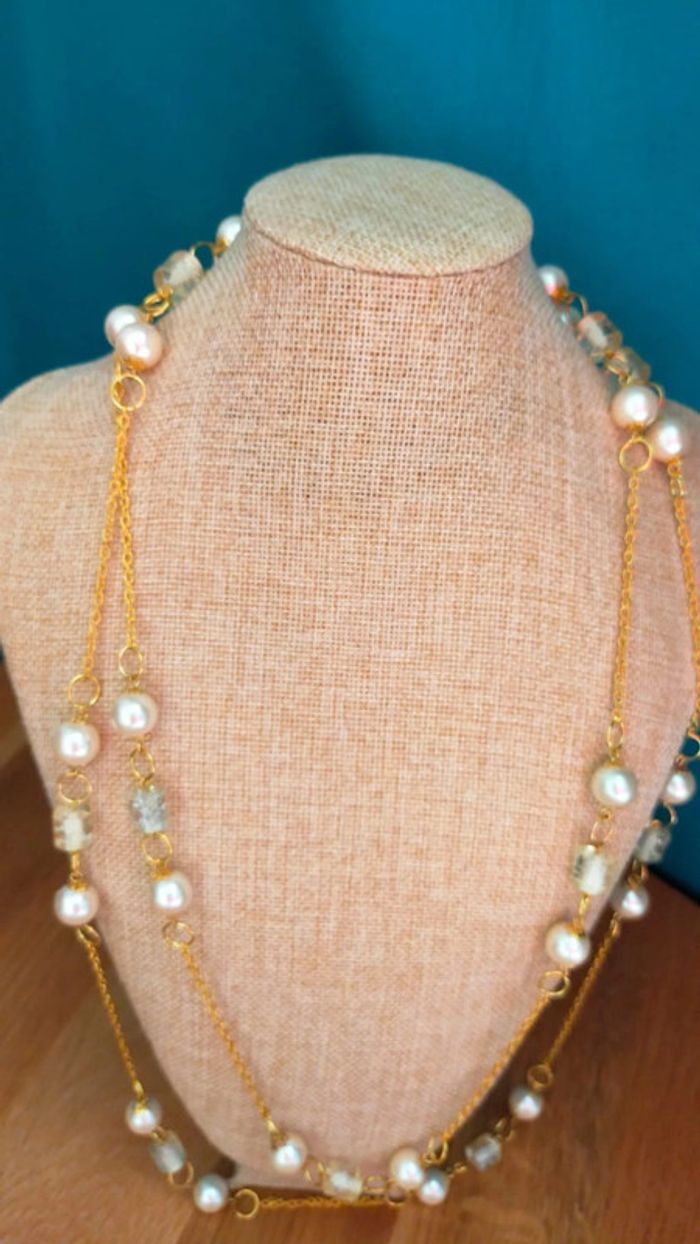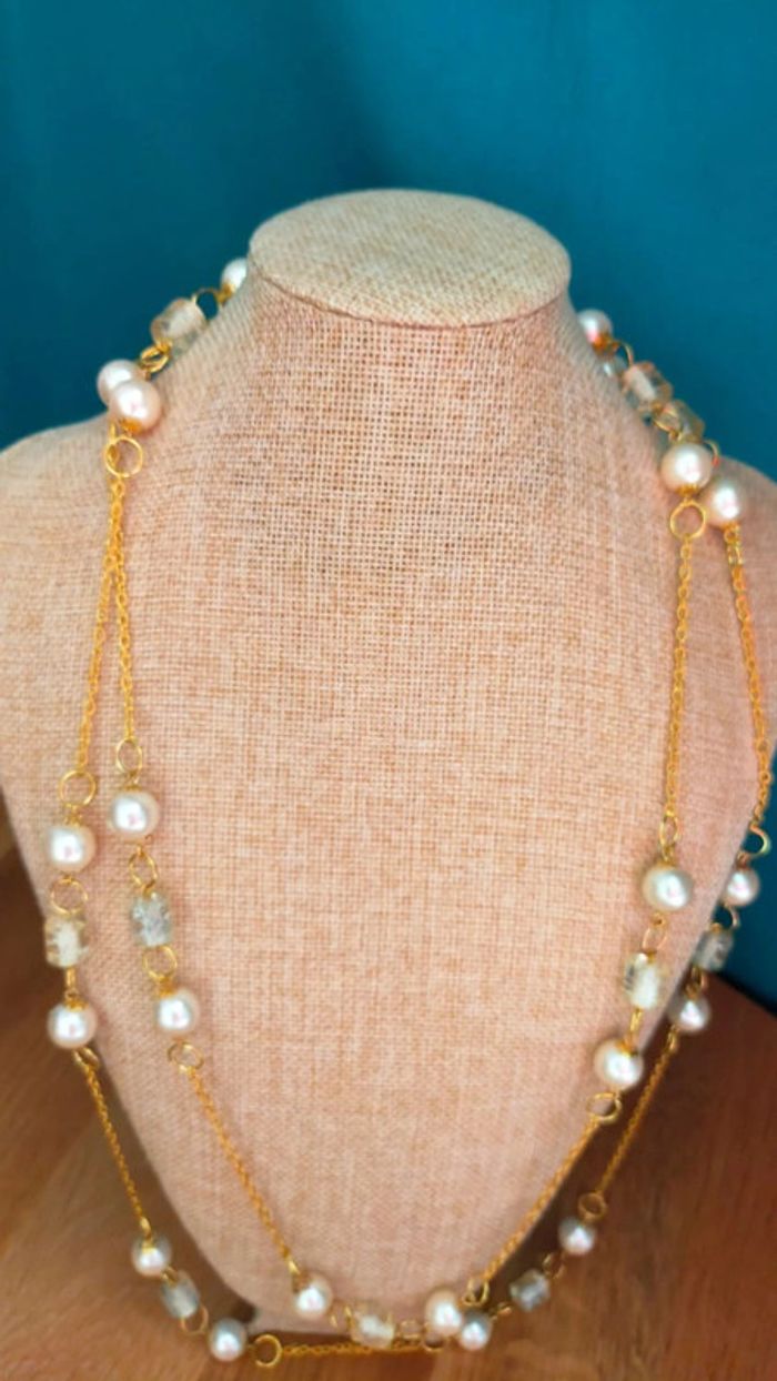 Élégante parure composée d’un collier doré à maillons fins, avec perles blanches nacrées et perles transparentes facettées. Boucles assorties incluses. Parfait pour une occasion ou pour illuminer une tenue sobre. 📌 Longueur collier : environ 70 cm 📌 Fermoir : mousqueton 📌 Couleur : doré, blanc nacré et transparent 📌 État : très bon état 🧷 Collection PMN = Petit prix – Mini prix – Fantaisie 💌 Je soigne l’envoi & l’emballage. Envoi rapide. 🎁 Possibilité d’envoi en lot ou d’ajouter un petit cadeau surprise en cas de plusieurs achats ! BIFAN #parure #collier #bouclesoreilles #perles #bijoudoré #chic #fantaisie #PMN