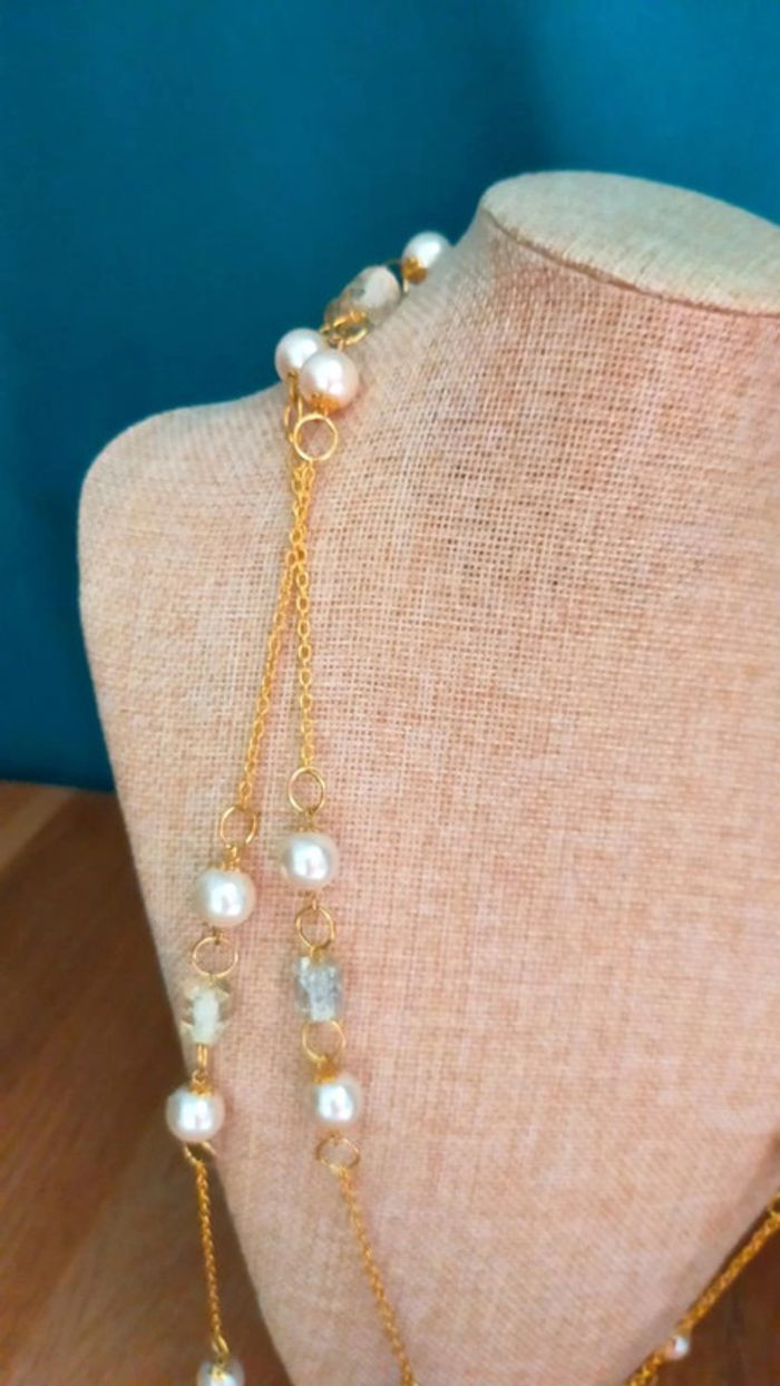 Parure collier + boucles d’oreilles perles dorées - photo numéro 10