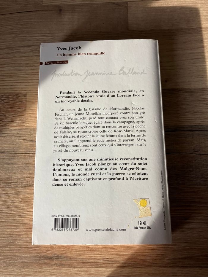 Livre relié dédicacé-Yves Jacob-Un homme bien tranquille