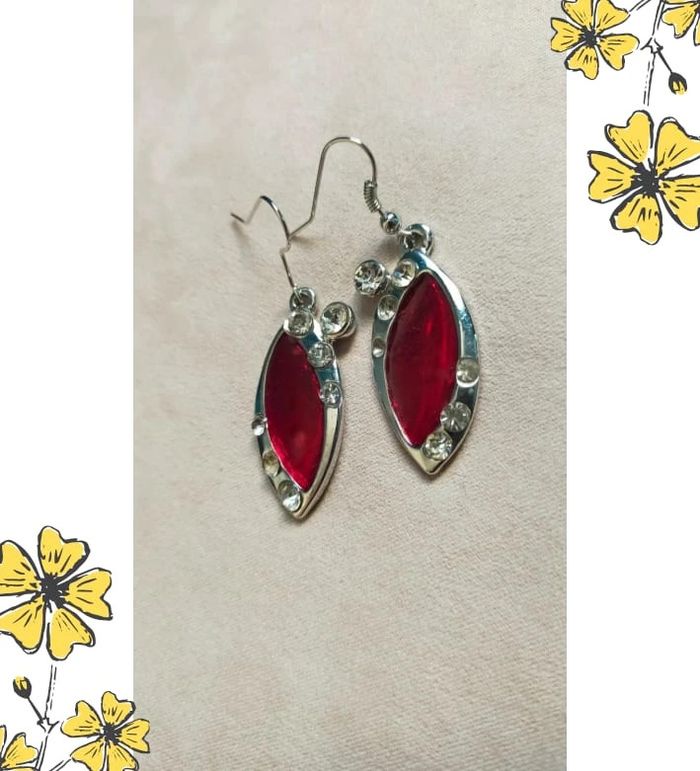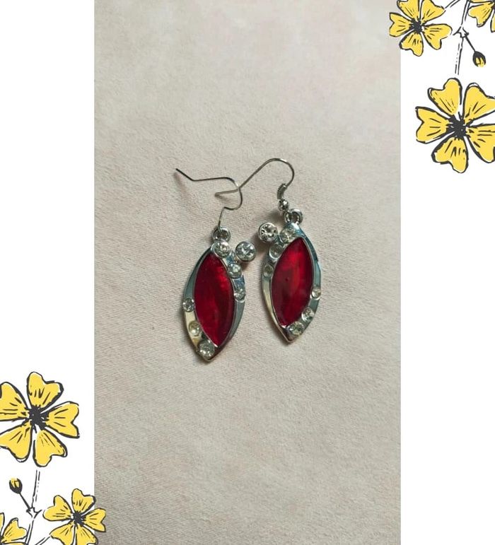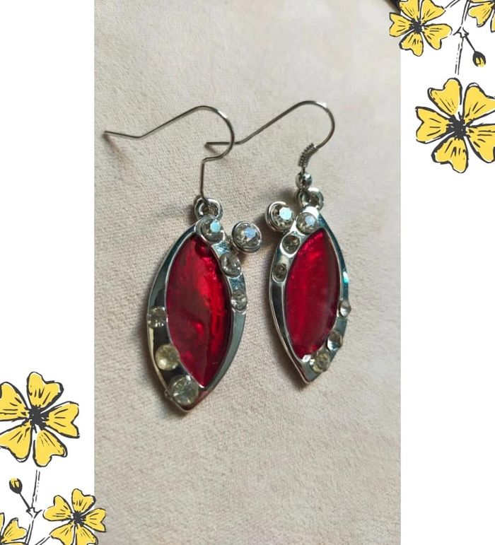 Parure fantaisie composée d’un pendentif et de boucles d’oreilles assorties. Les boucles arborent une forme d’œil inversé, tandis que le pendentif reprend la forme d’un œil classique, pour un effet symbolique et original. Couleurs rouge intense et argenté, pour un contraste éclatant et plein de caractère. 💎 Le pendentif est proposé avec un cordon noir brillant, mais il peut aussi se porter sur chaîne. LBIJ #parure #pendentif #bouclesdoreilles #bijouxfantaisie #rouge #argenté #formeœil #original #chic #élégant
