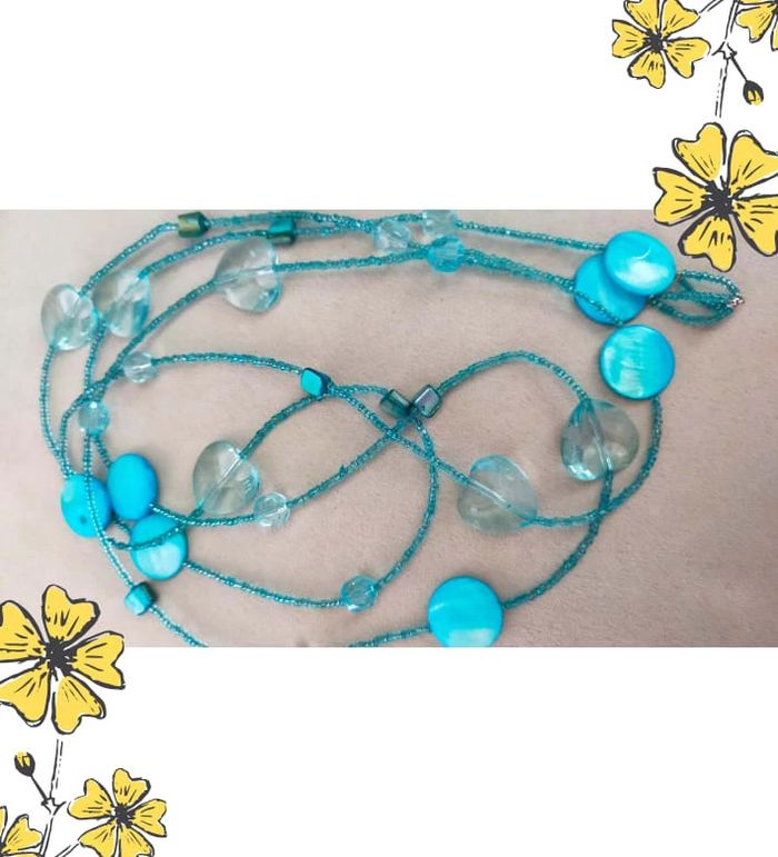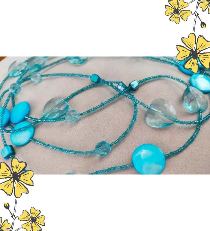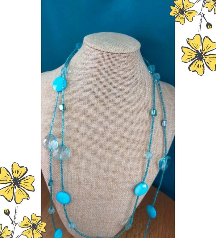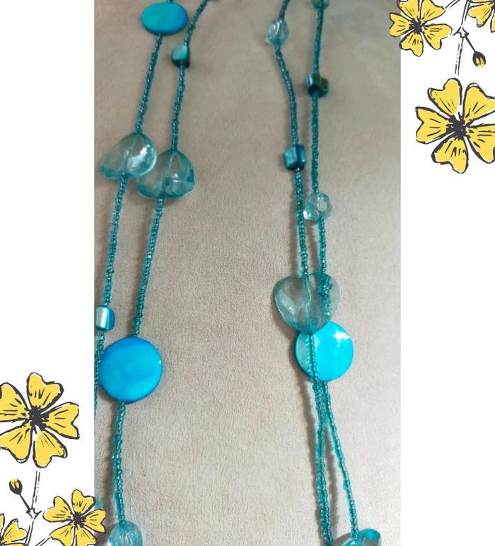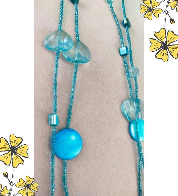 Collier long au style aérien et raffiné, composé de perles en forme de gouttes et de disques bleu turquoise translucides et nacrés. Idéal pour illuminer une tenue avec une touche de fraîcheur et d’originalité. Léger à porter, il peut se porter en une ou deux longueurs selon votre style. 💎 Détails : • Collier long double rangée • Perles en verre, acrylique et nacrées • Teintes : bleu glacier, turquoise, bleu ciel • Fermeture : sans fermoir – à enfiler • Style : bohème chic, estival, fantaisie élégante • Très bon état • Fait main avec soin – série très limitée ✨ Collection Brume Bleue : des bijoux inspirés par la mer, la brume et les éclats d’azur. 💙 À porter seul ou en accumulation avec d'autres colliers fins. 📦 Envoi rapide & soigné. Possibilité d’envoi en lot ou petit cadeau surprise pour les commandes multiples ! L3R #collier #bijouxfantaisie #collierbleu #collierlong #collierfemme #collierperles #bijouxboheme #bijouxfaitmain #bijouxtendance #collectionbrumebleue #cadeau #lookestivale