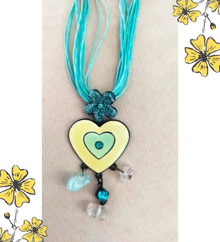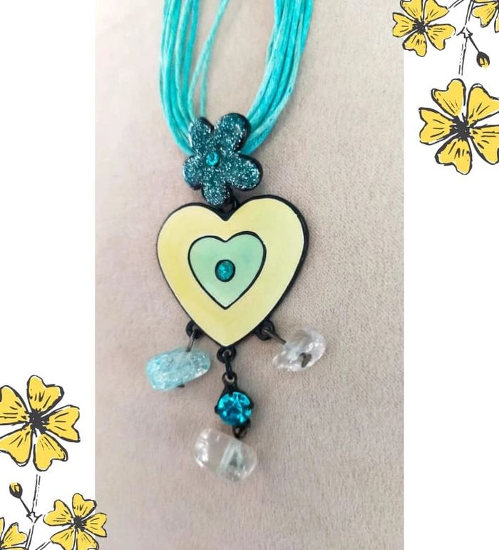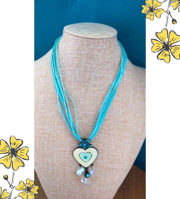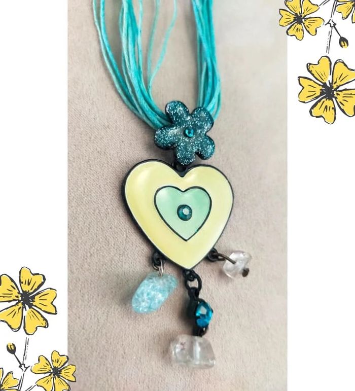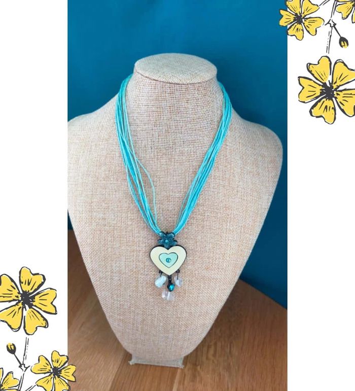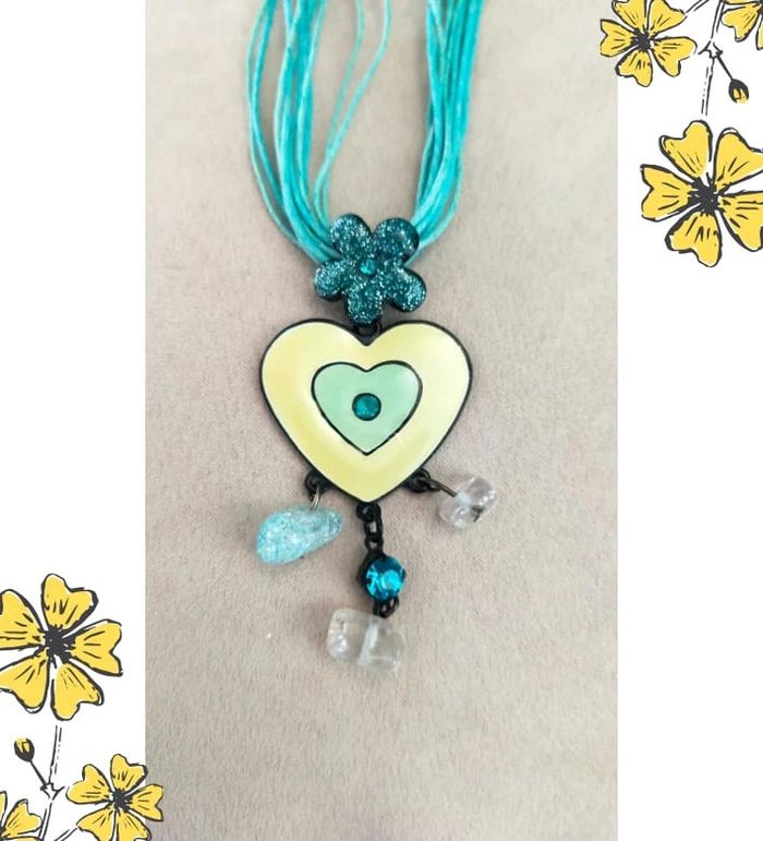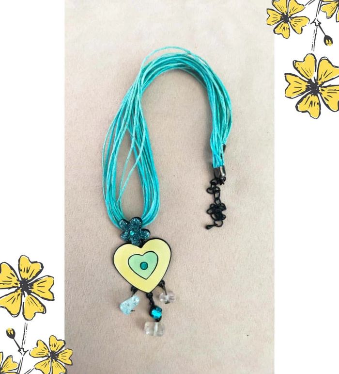 Un collier fantaisie plein de charme avec un pendentif en forme de cœur crème et vert pâle orné de strass bleus et de pampilles délicates. Le tout est suspendu à un cordon multibrins bleu ciel, apportant une touche bohème, tendre et lumineuse à votre tenue. 📏 Longueur ajustable (cordon multibrins en coton) 📎 Fermoir mousqueton + chaînette de réglage 🌼 Détails : pendentif cœur laqué, fleur à paillettes, pampilles (perles transparentes, perle bleue facettée, goutte craquelée bleue) 💙 Collection Brume Bleue – pour les amoureuses des détails doux et poétiques 💌 Je soigne l’envoi & l’emballage. Envoi rapide. 🎁 Possibilité d’envoi en lot ou d’ajouter un petit cadeau surprise en cas de plusieurs achats ! #collier #pendentif #coeur #bijoufantaisie #collierfemme #bijoupoétique #bleuciel #cadeaufemme #bohème #bijouoriginal #collectionBrumeBleue #colliercharmant #bijouxfaitmain