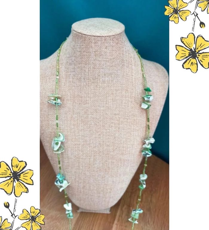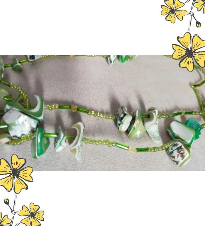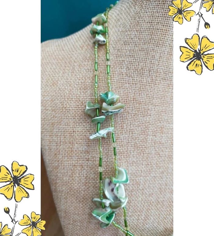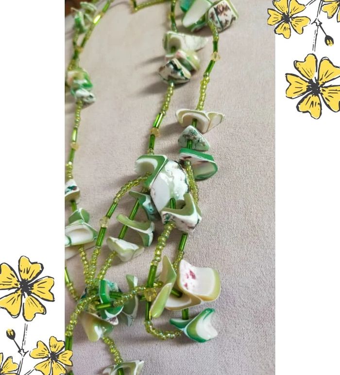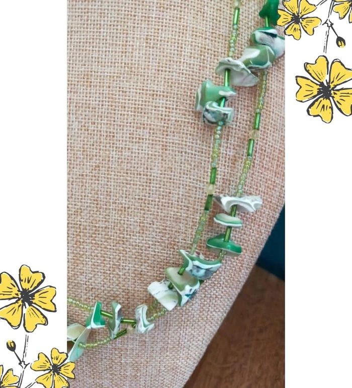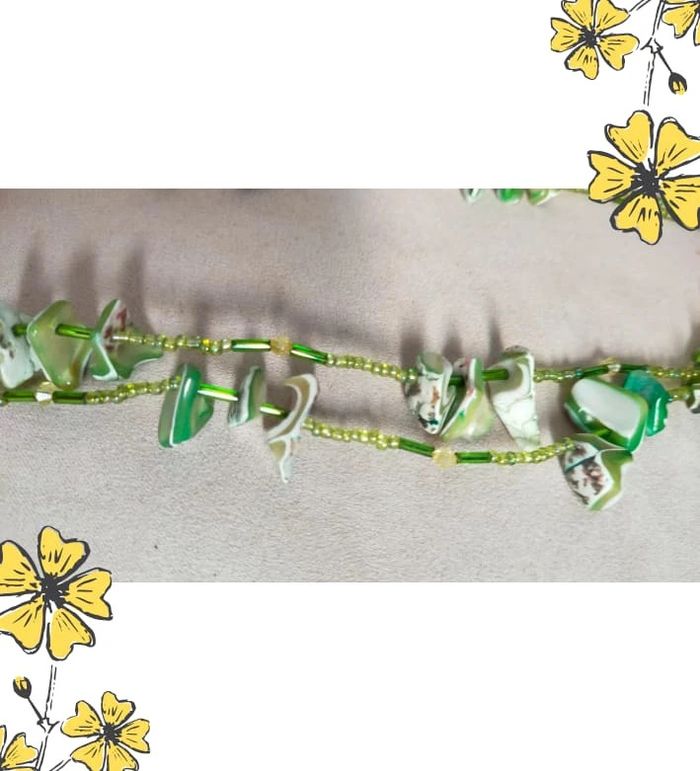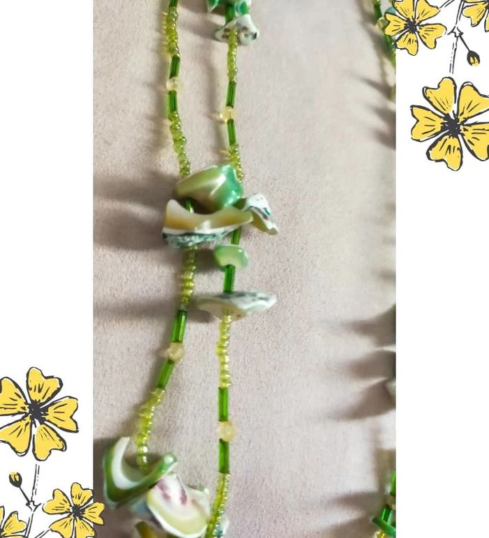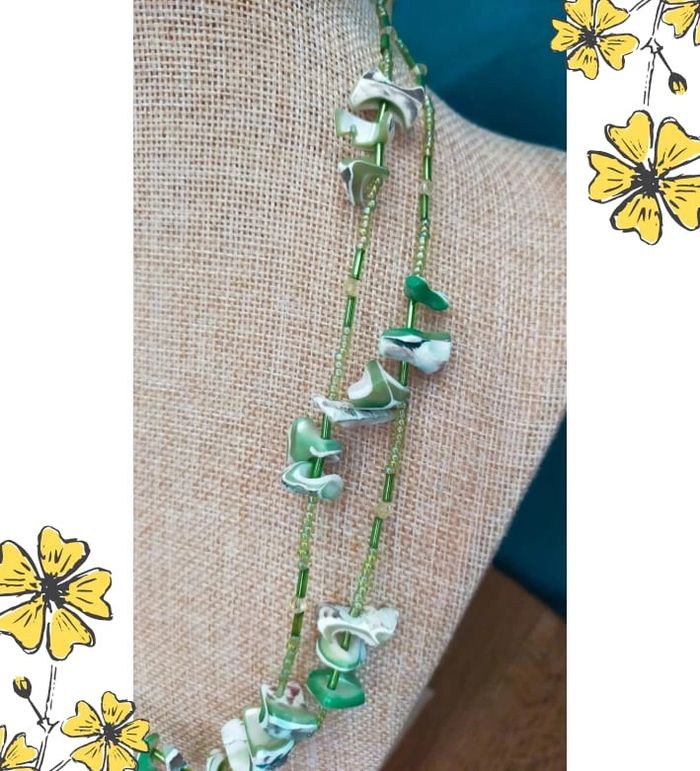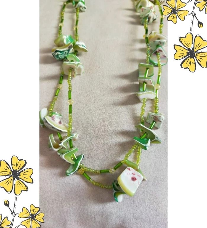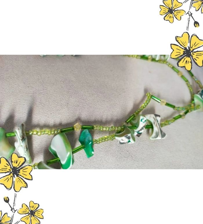 Collier vintage en nacre naturelle teintée et perles vertes – Collection Émeraude Urbaine - photo numéro 1