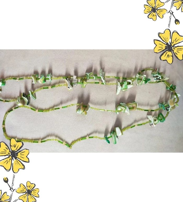 Sublime collier long et léger composé de véritables éclats de nacre naturelle teintée vert amande et crème, associés à des perles de rocaille vert anis et des tubes nacrés. Les reflets irisés uniques de la nacre apportent une touche de lumière et d’élégance. Chaque éclat est façonné de manière organique, rendant ce bijou absolument unique. 💚 Parfait pour un look bohème chic ou une tenue estivale naturelle. 📏 Longueur : env. 80 cm (sautoir sans fermoir) 🔗 Fermeture : sans fermoir (s’enfile directement) 🟢 État : Très bon état vintage – nacre brillante, aucune cassure visible. 📦 Envoi rapide & soigné. 🎁 Possibilité d’envoi en lot ou petit cadeau surprise offert en cas de commande groupée ! L9V #collier #colliervintage #colliernacre #bijouboheme #bijouvert #bijouethnique #sautoir #bijounaturel #nacre #jolietrouvaille #collectionemeraudeurbaine #vintagestyle