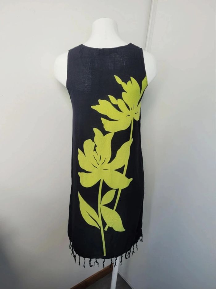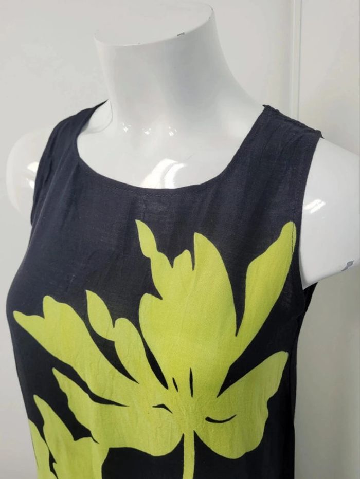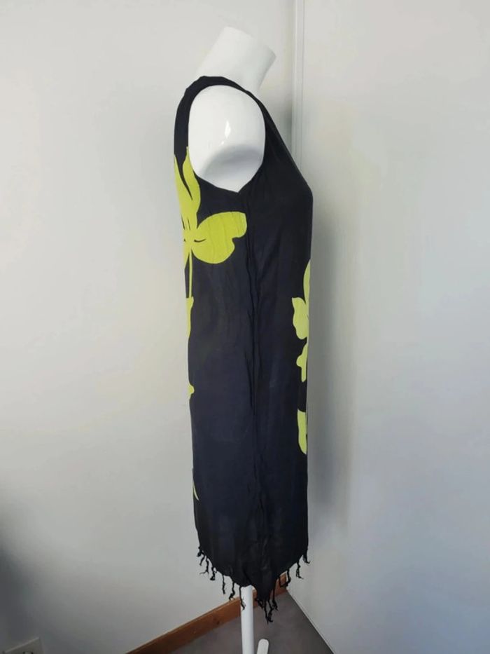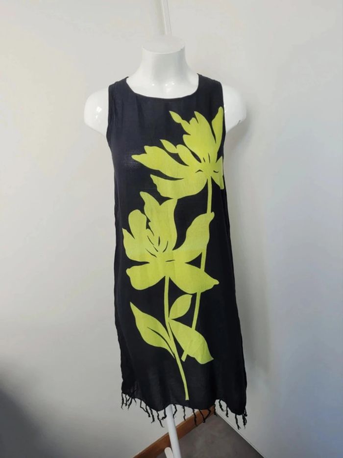 Jolie robe 👗 noire à feuillage 🌿 vert, marque Metiss. Noté taille L mais convient mieux pour un 36/38.
