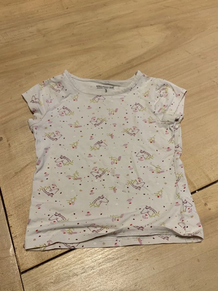 Lot de 2 tee-shirts blanc avec motifs arc en ciel et licorne 3 ans en très bon état - photo numéro 7