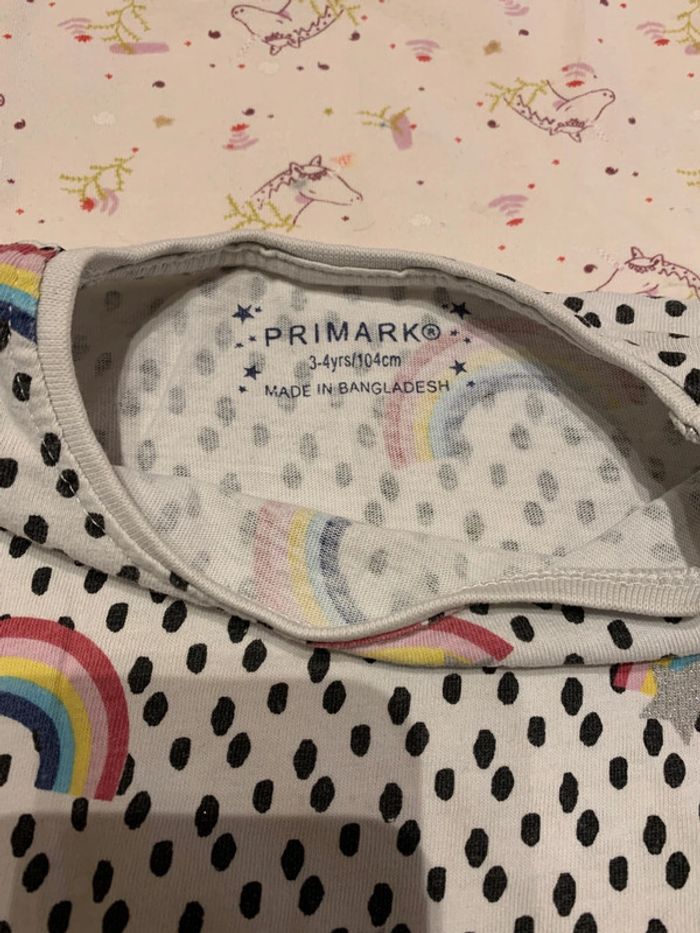 Lot de 2 tee-shirts blanc avec motifs arc en ciel et licorne 3 ans en très bon état - photo numéro 9