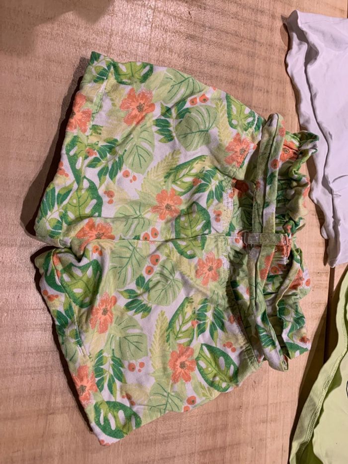 Magnifique ensemble d’été en parfait état ! 🌟 short motif floral avec du feuillage sur les ton vert et rouge. Taille élastique avec une ceinture dans les mêmes ton qu’elle le short. Très léger et agréable à porter ! Matière en photo 🌟 Tee-shirt sans manche type débardeur blanc avec des motifs colorés. Pour la matière je n’ai plus l’étiquette. 🌟 Tee-shirts vert clair bouffant avec motifs colorés magnifique. Légèrement resserré au niveaux des manches par un élastique mais sa reste large. Matière en photo 🌸 Pas de tache, ni de trou 🙂 🌺 N’hésitez à fouiller, réduction sur les lots activée 😊 ✉️ Envoie rapide 😉 Si vous avez des questions n’hésitez pas à m’écrire je mets régulièrement des articles alors pensez à vous abonner pour ne rien manquer 🙂 😉
