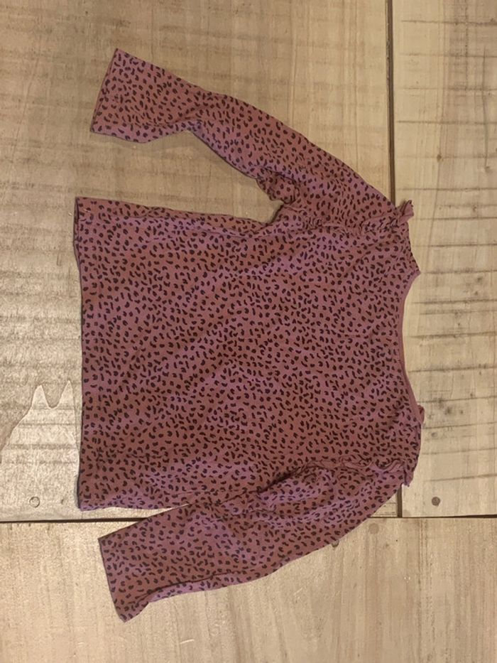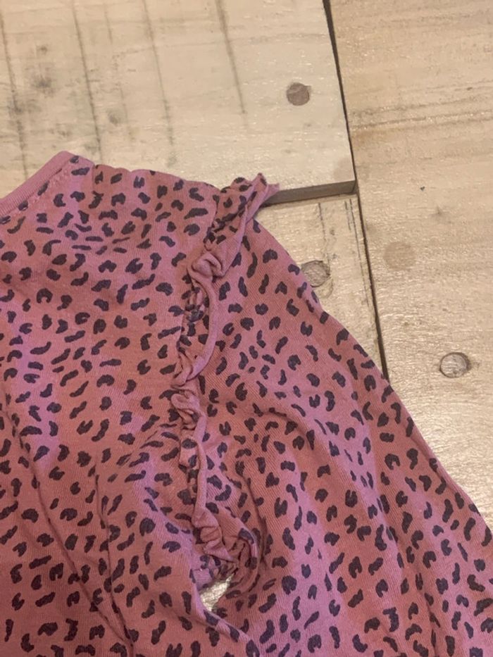 Haut à manche longue motif Léopard avec des frou-frou au niveau des épaules. En très bon état ! 🌸 Pas de tache, ni de trou 🙂 🌺 N’hésitez à fouiller, réduction sur les lots activée 😊 ✉️ Envoie rapide 😉