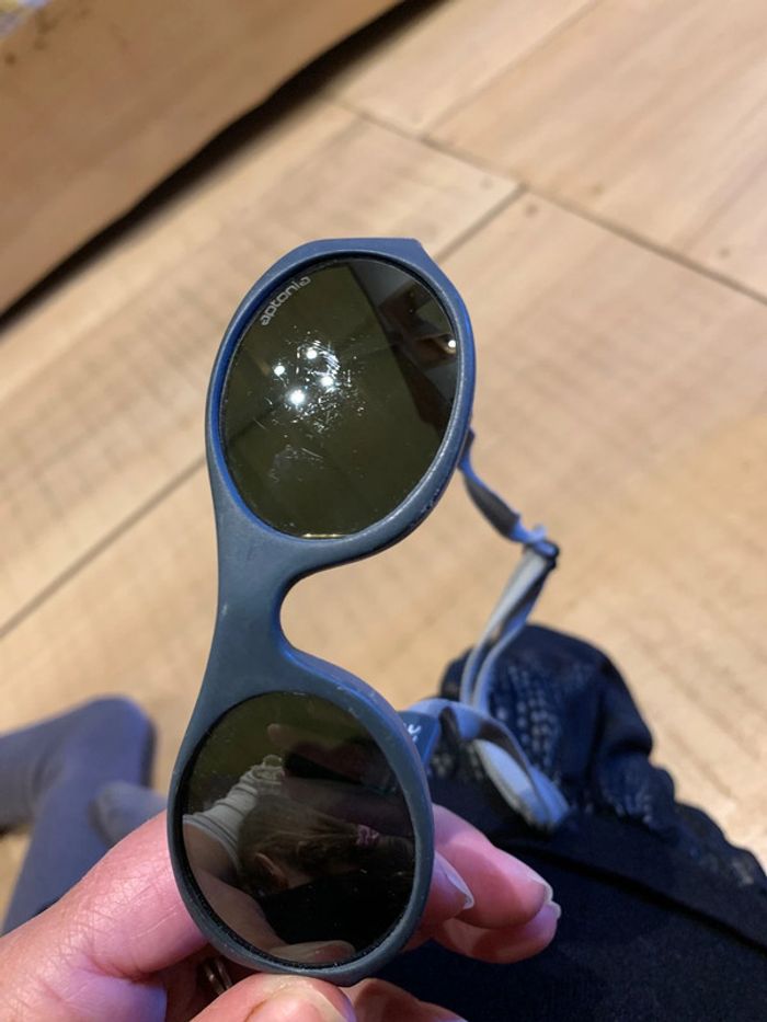 Les verres sont rayés voir les dernières photo mais ce sont des micro rayures ! Ma fille les a porté à ses 6 mois mais je n’ai pas la taille… Elles sont en plastique mais flexible ! Lanière pour les régler à la tête de l’enfant ! Ça va autant pour les filles que les garçons 😉 🌺 N’hésitez à fouiller, réduction sur les lots activée 😊 ✉️ Envoie rapide 😉