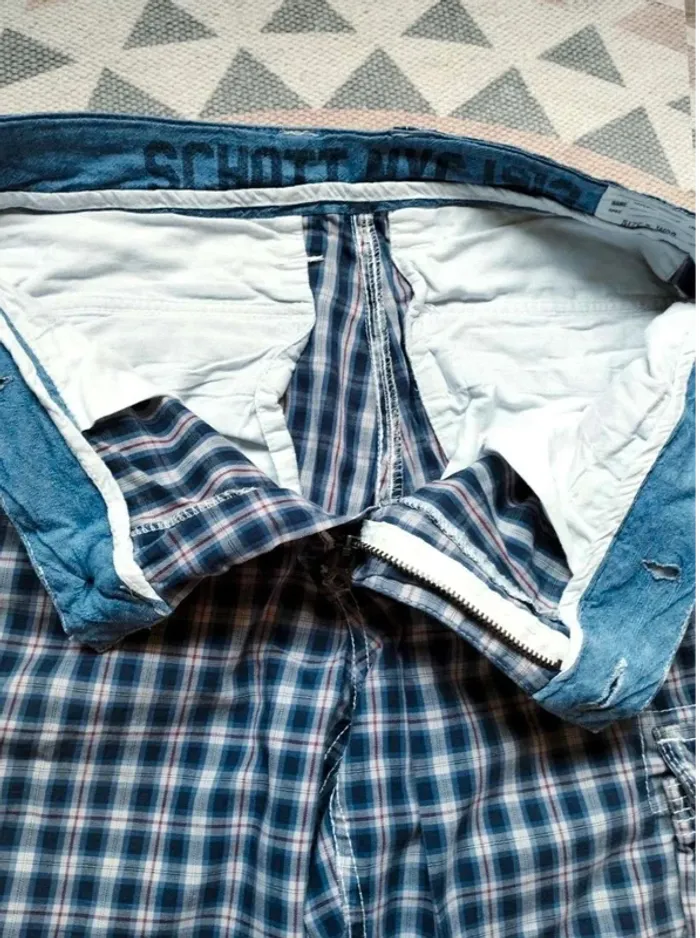 Short cargo Scott NYC, taille 30 (correspond à un 40) ⭐ En très bon état ⭐ A carreaux, poches pressionnées sur les côtés L'élastique à la taille a été retiré La dernière photo donne une idée du rendu porté ⭐ Dimensions : Longueur : 53 cm Largeur de taille : 41 cm Longueur de la fourche : 26 cm --------- N'hésitez pas à jeter un œil au reste du dressing 🤗 #laetijahomme ******** 📦 J'accepte les retours 👍 Et je prends les frais à ma charge si par mégarde l'erreur venait de moi 🫣
