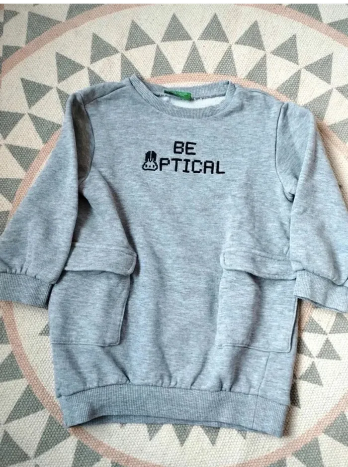 Très jolie robe sweat United Colors of Benetton, taille 4 ans ⬇️ ⭐ En parfait état, comme neuve, portée seulement 2 fois 🎨 Grise, broderie marine "Be optical" devant avec motif lapin 🧶 En molleton de coton 👗 2 poches devant. Très confortable et pratique. Vraiment très jolie 😍 Très sympa portée, de bonne qualité, superbe coupe, resserrée en bas, effet streetwear Malheureusement elle est devenue rapidement trop petite pour ma fille 😥 Idéale pour la mi-saison portée avec un legging ou un collant ------------ N'hésitez pas à jeter un œil au reste du dressing 🤗 #laetijaF4ans