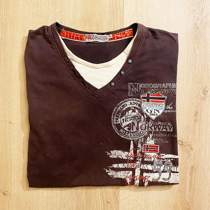 Geographical Norway Expedition T-Shirt Brun Homme Traveller Collection Vintage World (Taille XL)