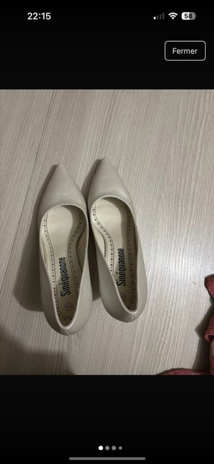 Chaussure à talon porter une fois lors de mon mariage couleur blanc nacré acheter 27,99€ hauteur du talon 8 cm