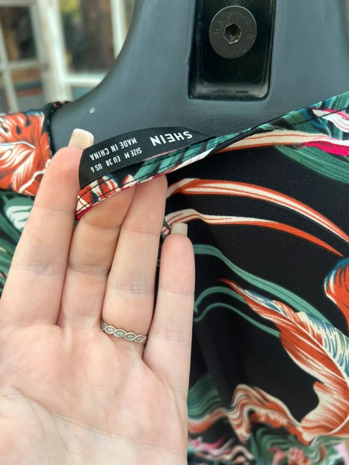 Robe shein taille M 38 été femme bleu marine à motif tropical - photo numéro 6