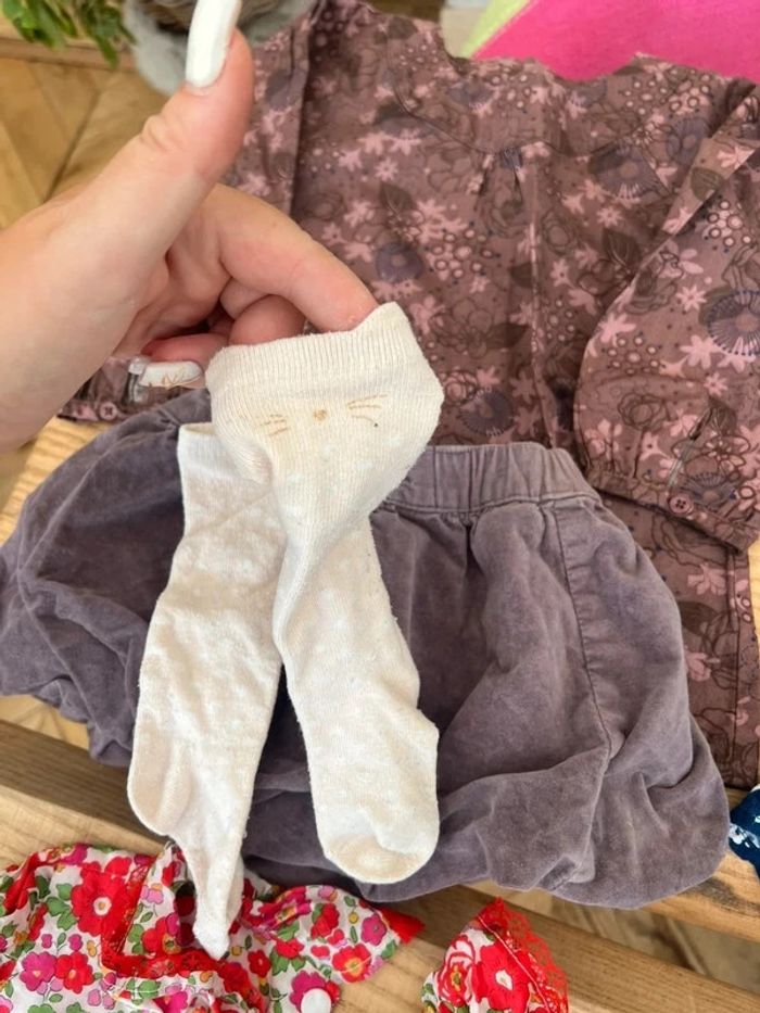 Lot fille automne hiver 18 - 24 mois / 2 ans - Robe legging et pince en Liberty (même tissu que Jacadi) et velours côtelé superbe porté fait par une créatrice - robe de soirée / princesse / créateur tape à l’œil 2 ans - ensemble sergent major robe 2 ans bon état foulard Tbe bandeau Tbe + collants pas de la marque - ensemble Bodie côtelé 2 ans Tbe / jupe Zeeman 2 ans Tbe / bandeau créatrice en velours rouge foncé Tbe / chaussettes hautes côtelées Tbe avec gros noeud en satin - ensemble blouse kiabi 24 mois Tbe / jupe velours lisse 18 mois tape à l’œil bon état / chaussettes hautes tape à l’œil chat bon état - gilet en laine rose long 2 ans Tbe tape à l’œil - ensemble Bodie à rayures kiabi 24 mois / jupe à bretelles Zara 18 mois - chaussons en cuir bien portés - chausson Minnie bon état Soit 20 articles pour 30€ soit 1€50 / pièce
