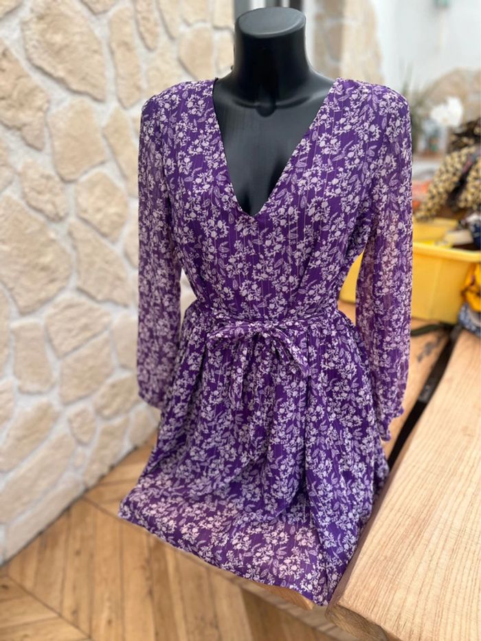 Robe kiabi taille L 40 violet à fleurs blanche voilage casual - photo numéro 5